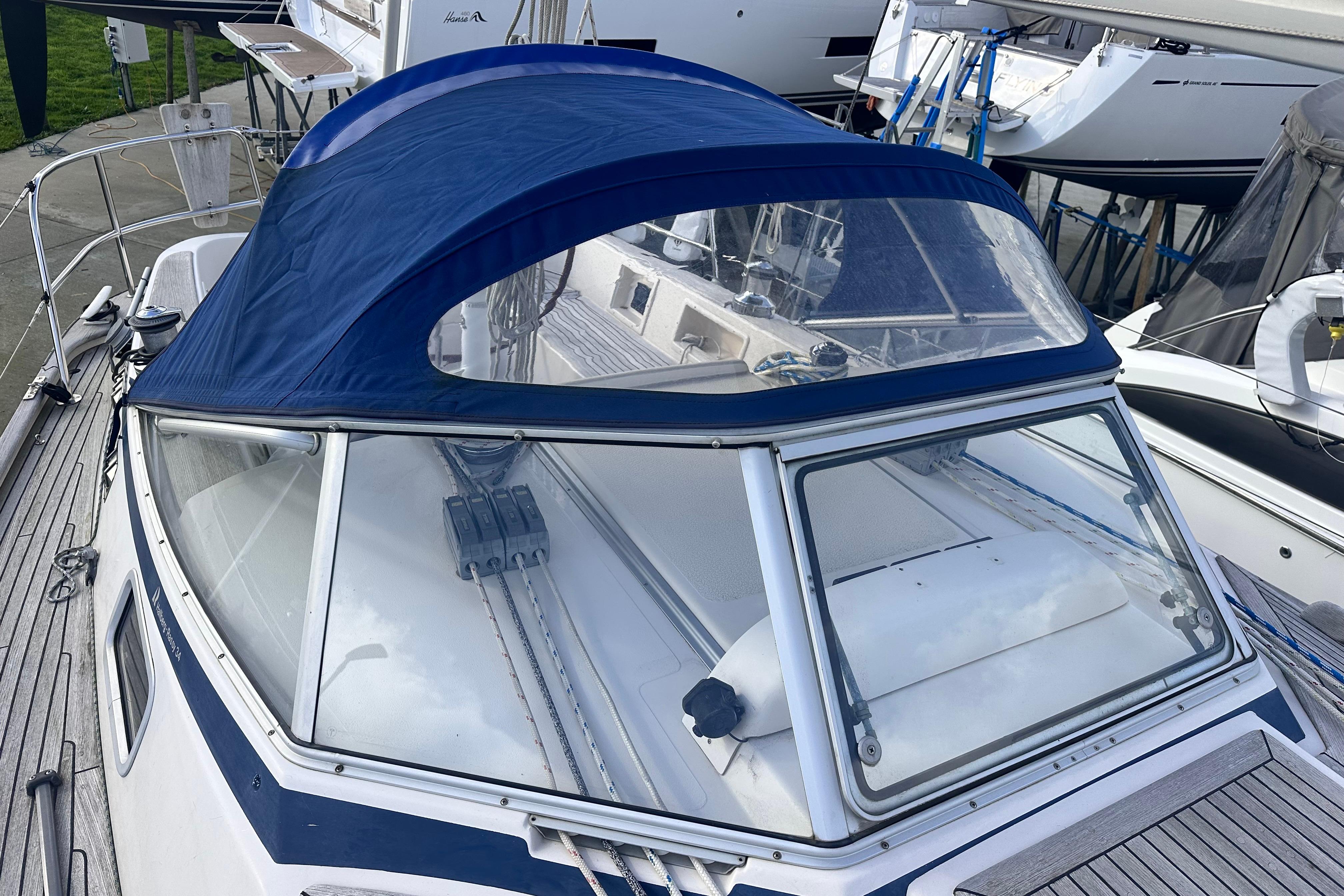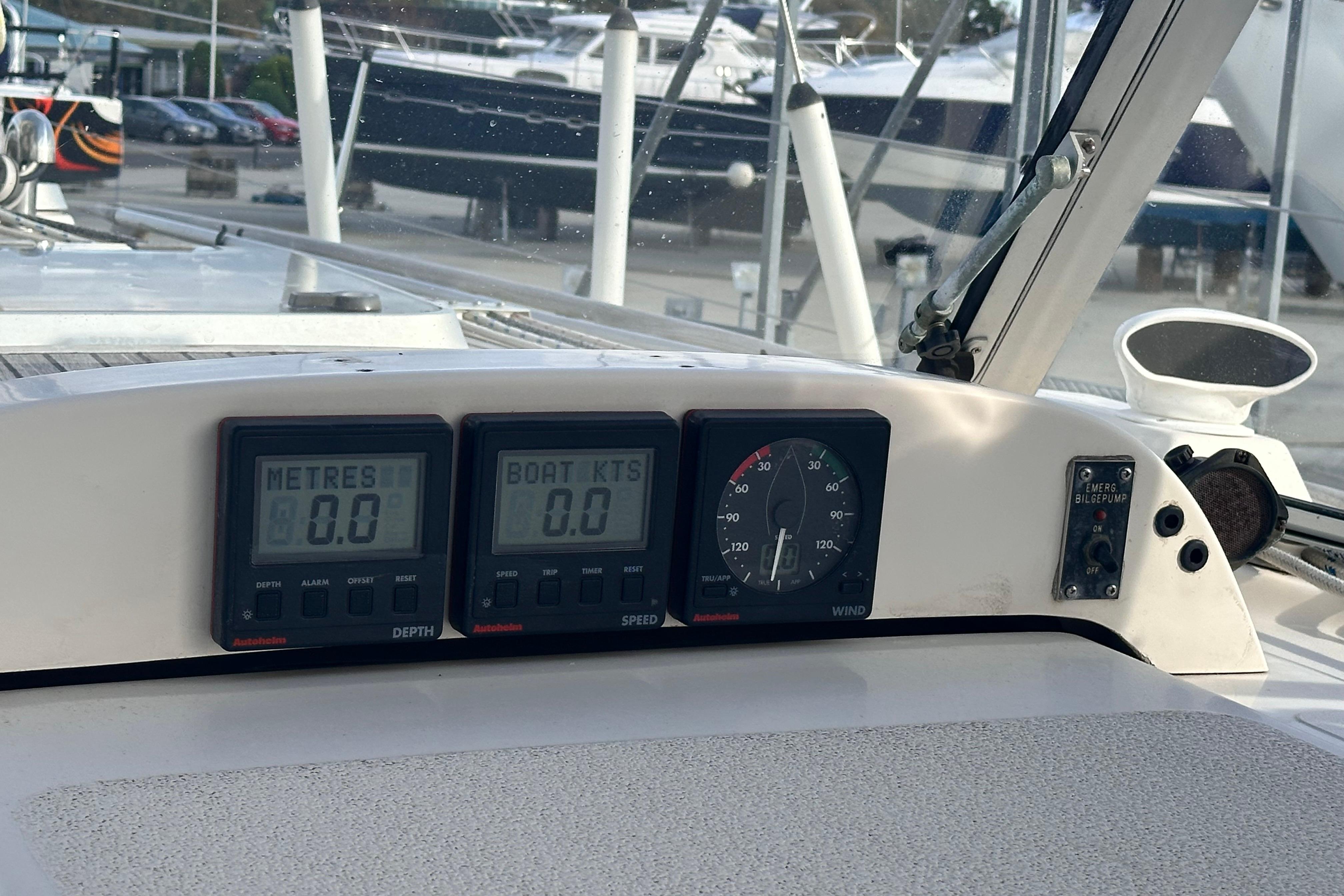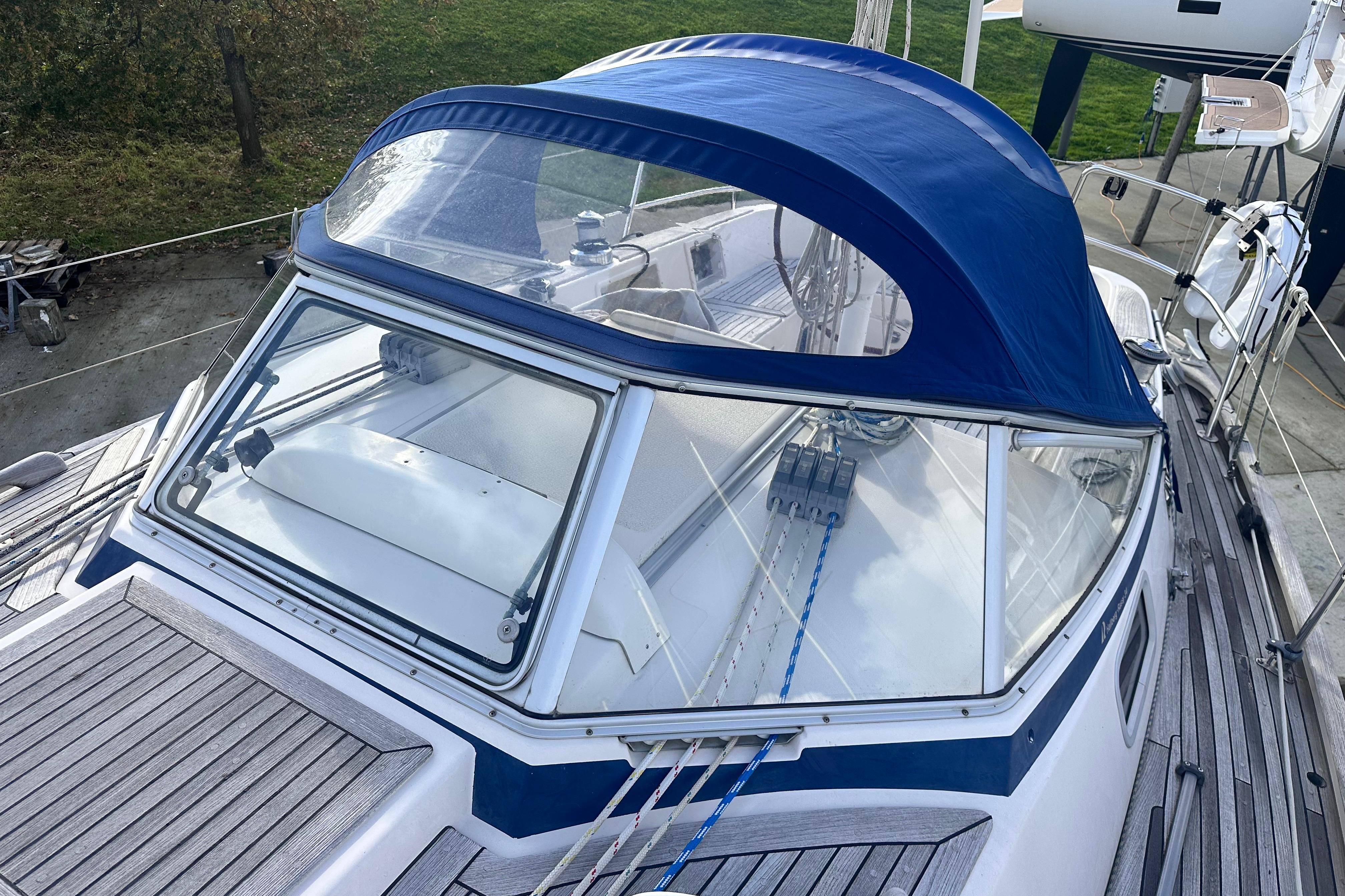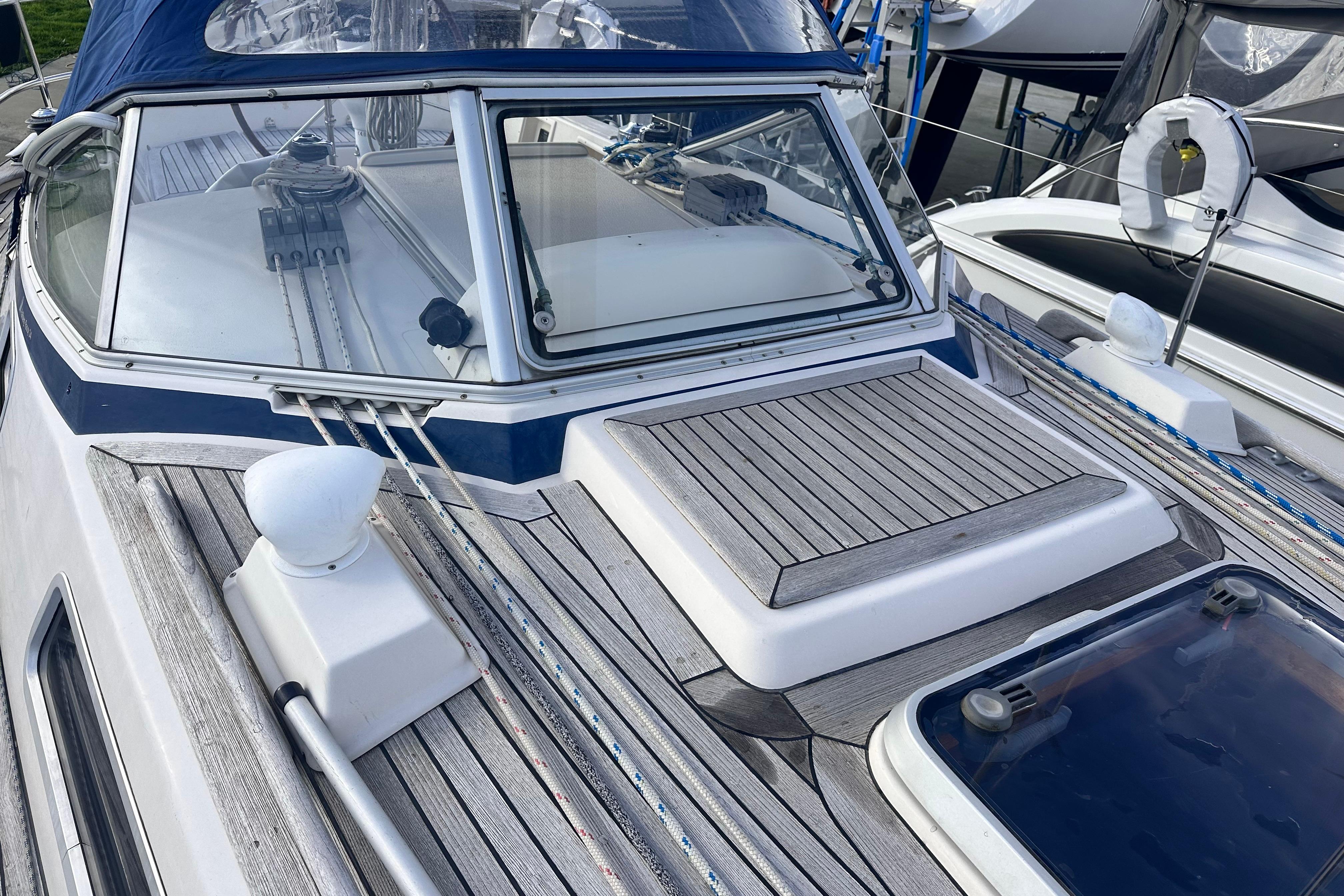 Halyards and lines lead into cockpit through 8 jammers to two winches under the windscreen