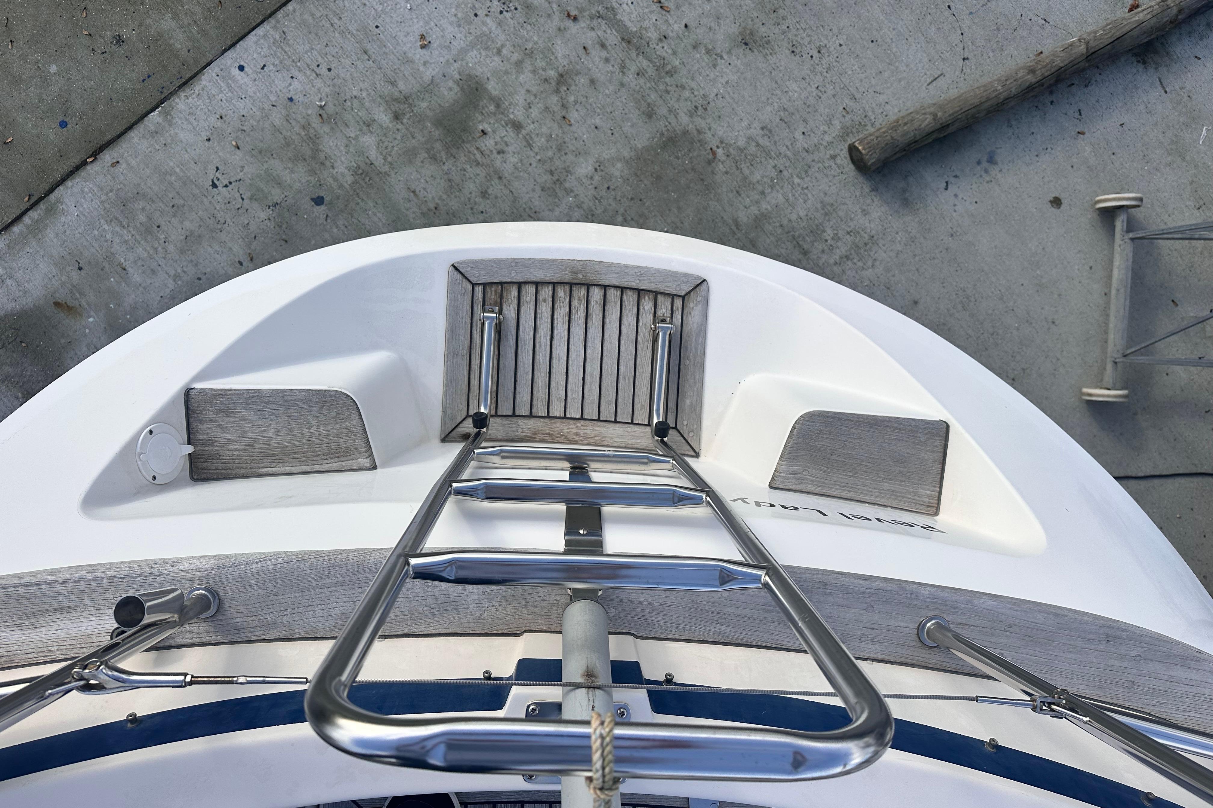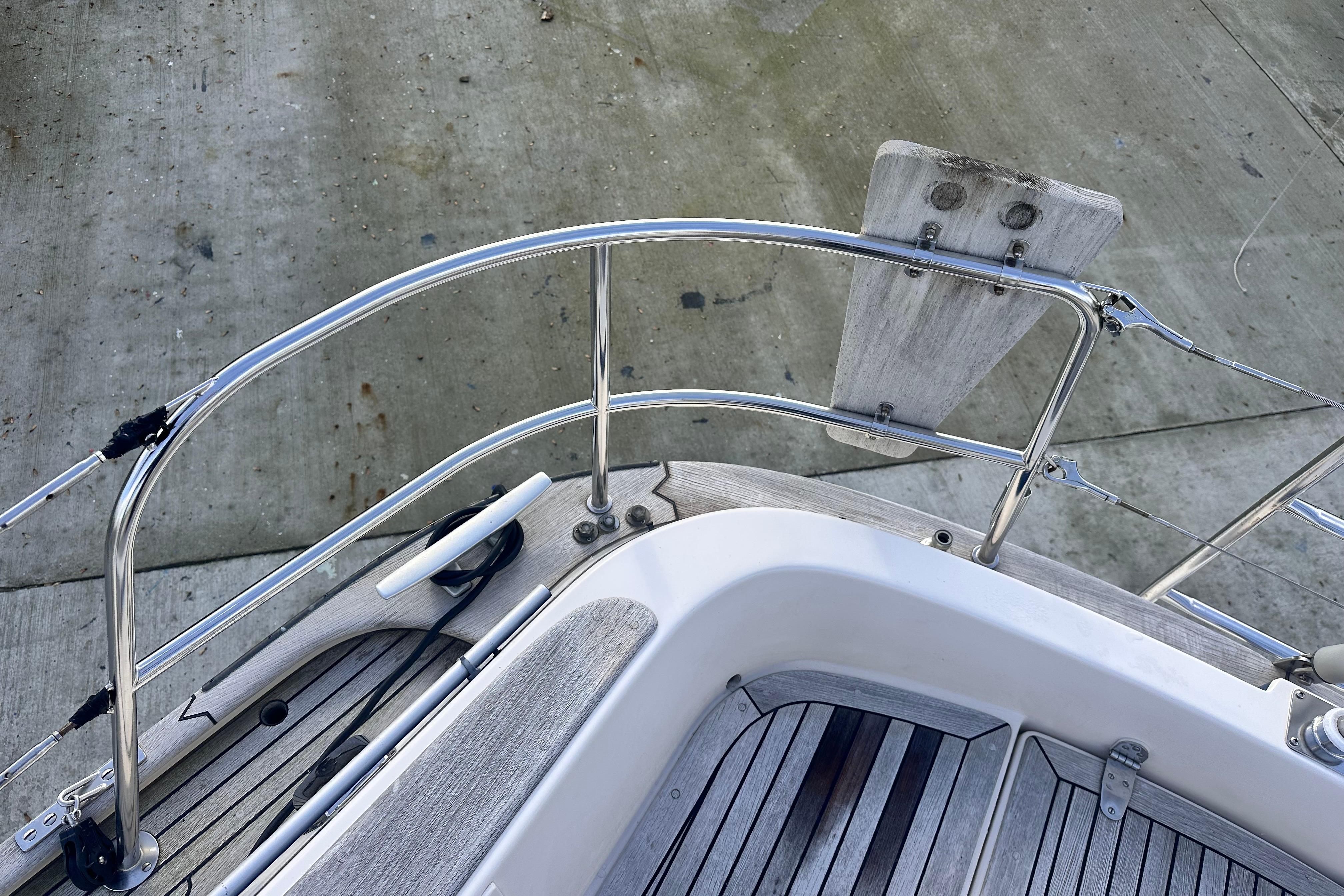 Pulpit and pushpit in stainless steel with guard rails (rails replaced Spring 2018)