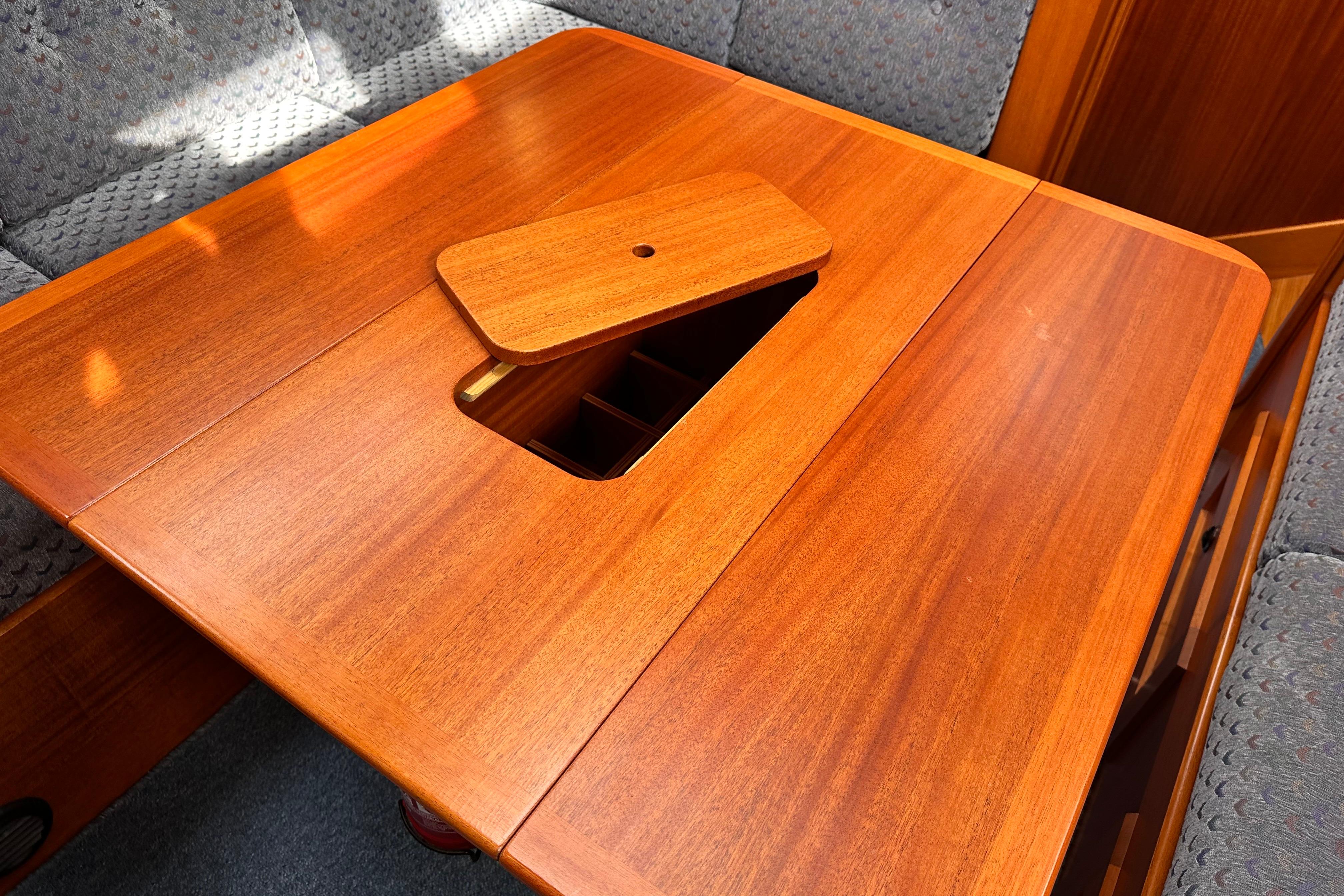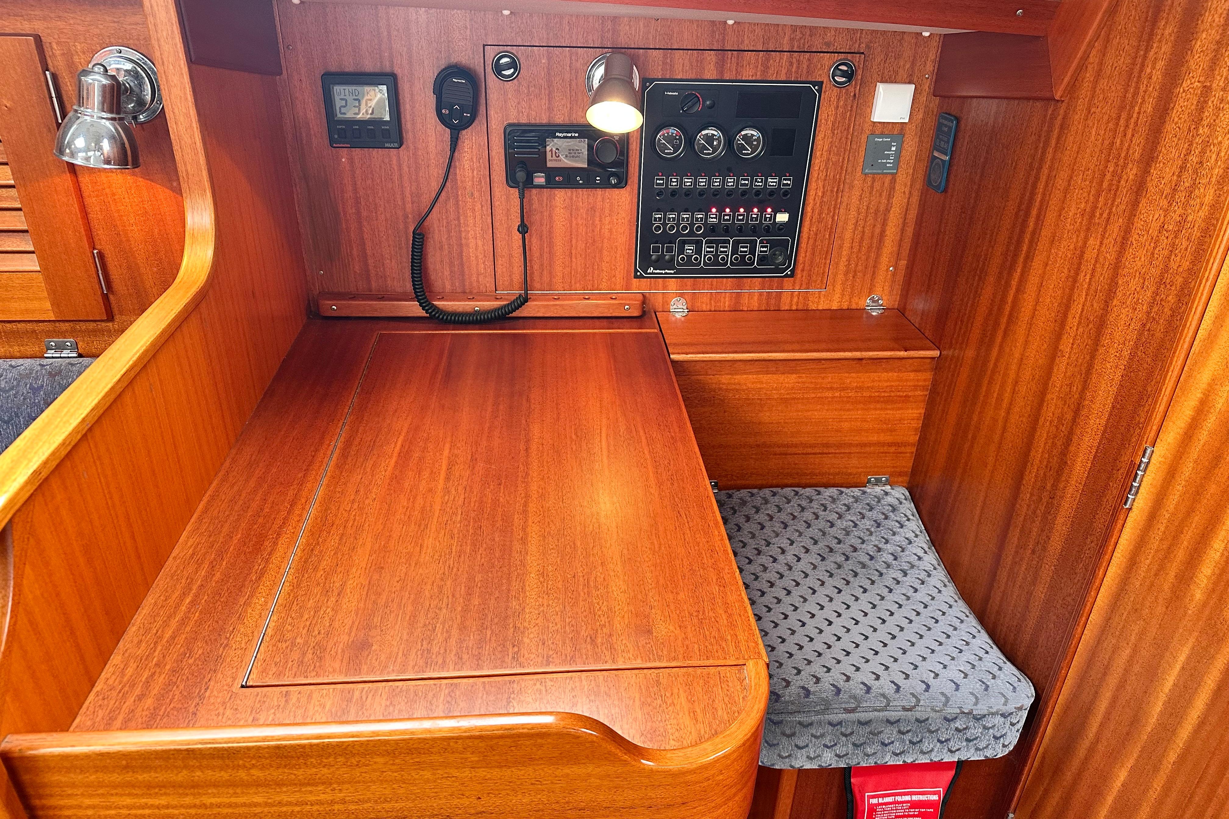 In 2022 the high wear areas of the yacht including chart table and companionway wear re-varnished to a high standard.