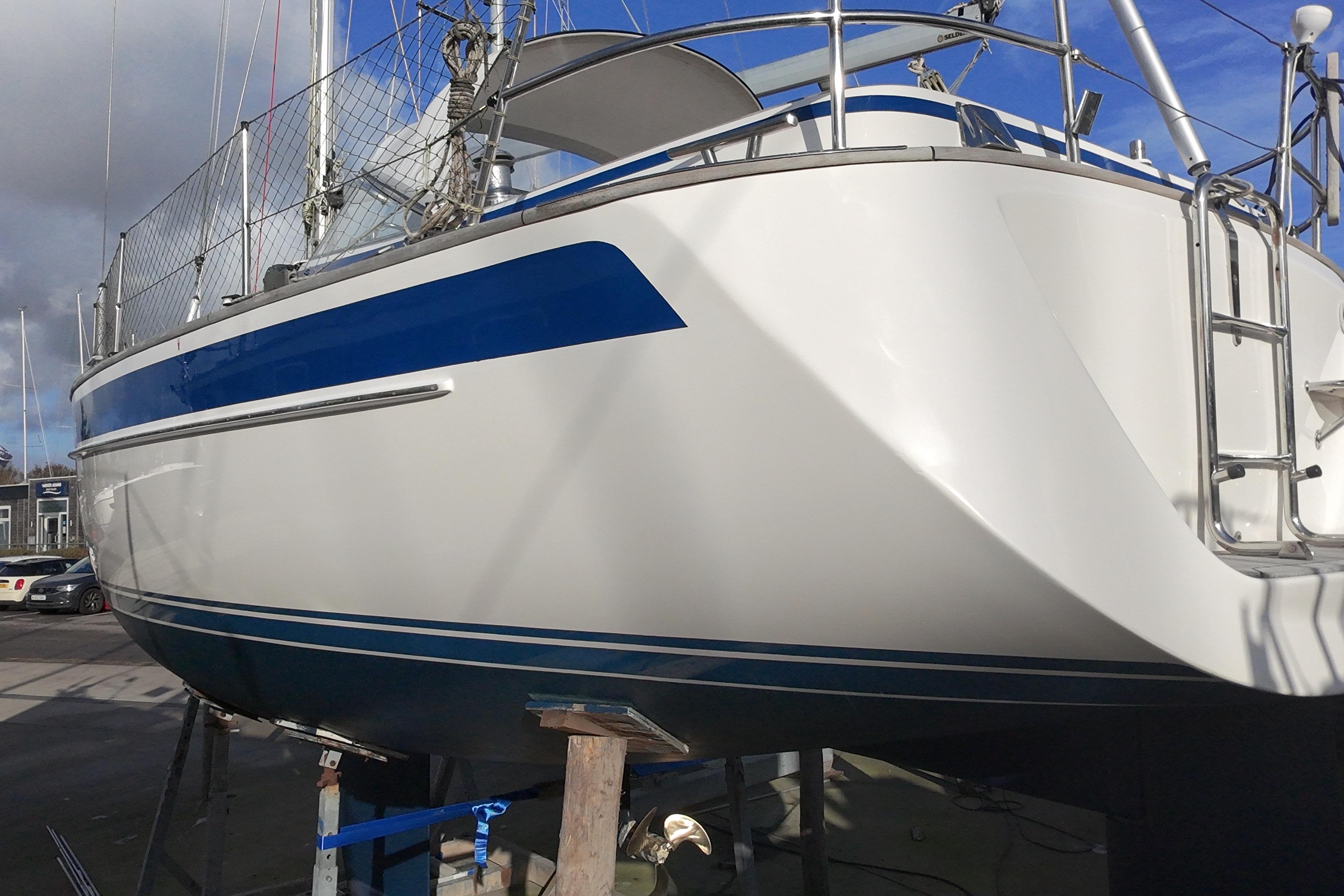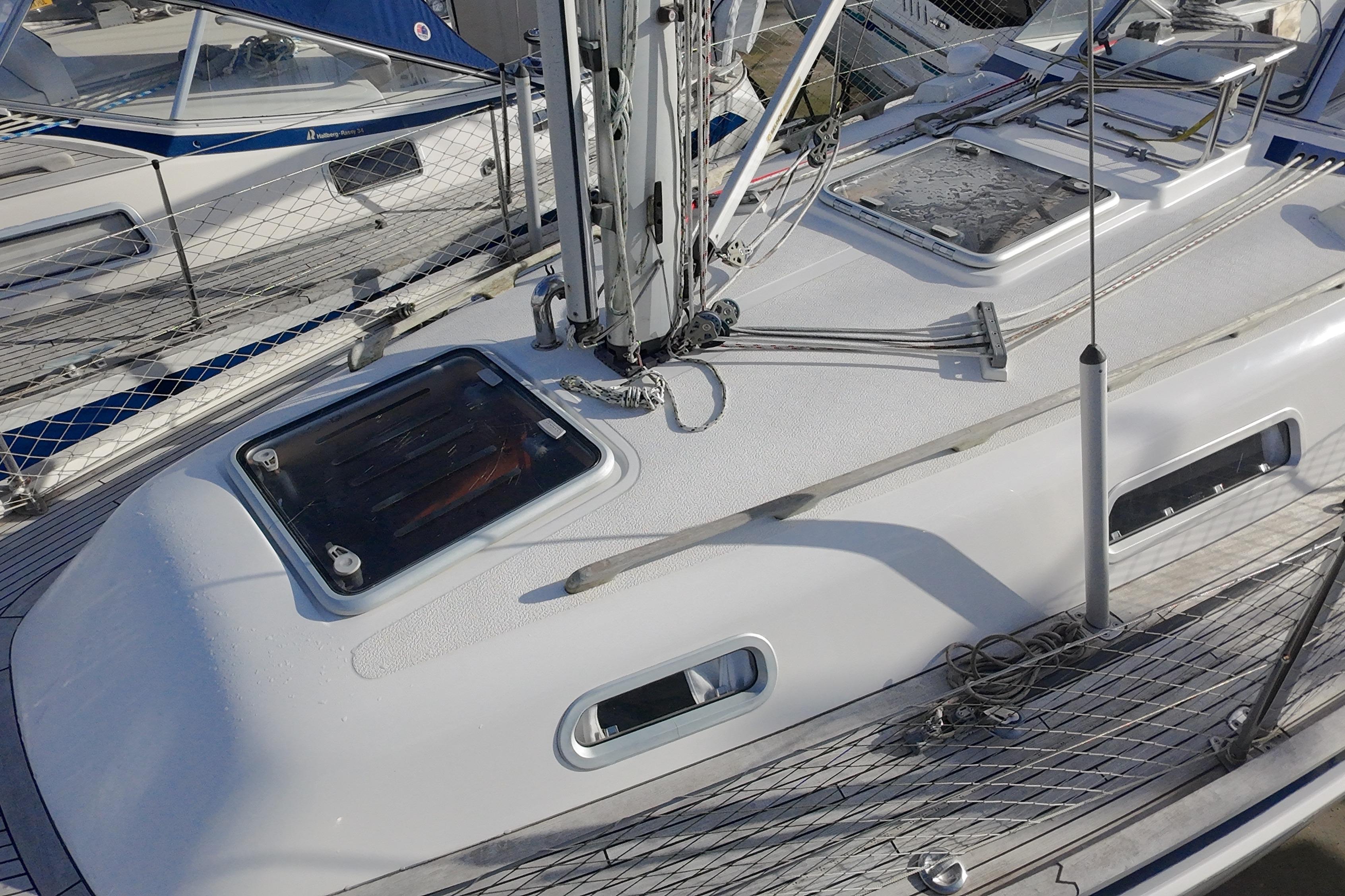 The boat is CE certified by Germanischer Lloyd and delivered with a CE certificate and a CE plaque for category A (unlimited ocean voyages).