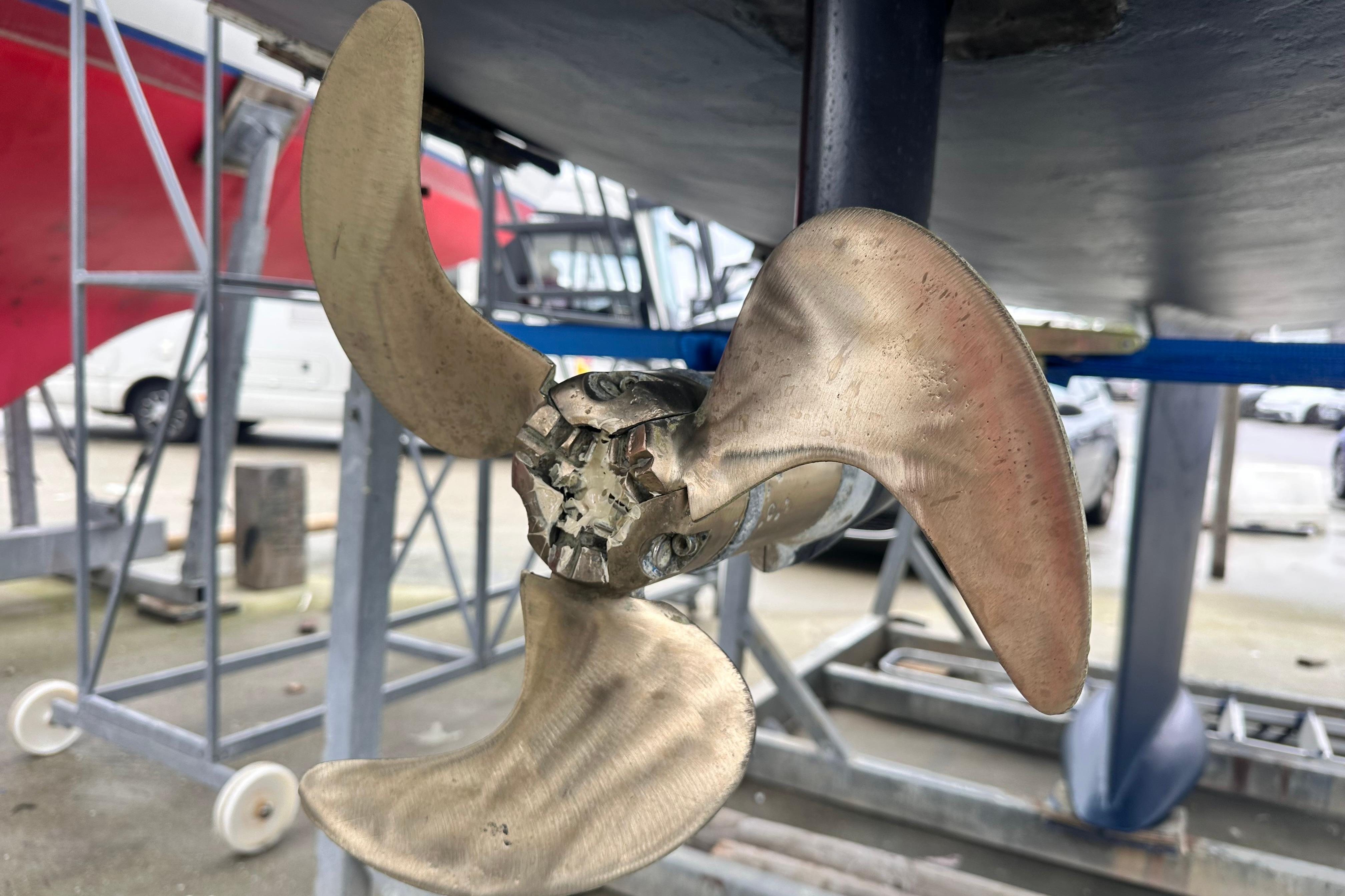 Three bladed folding bronze propeller