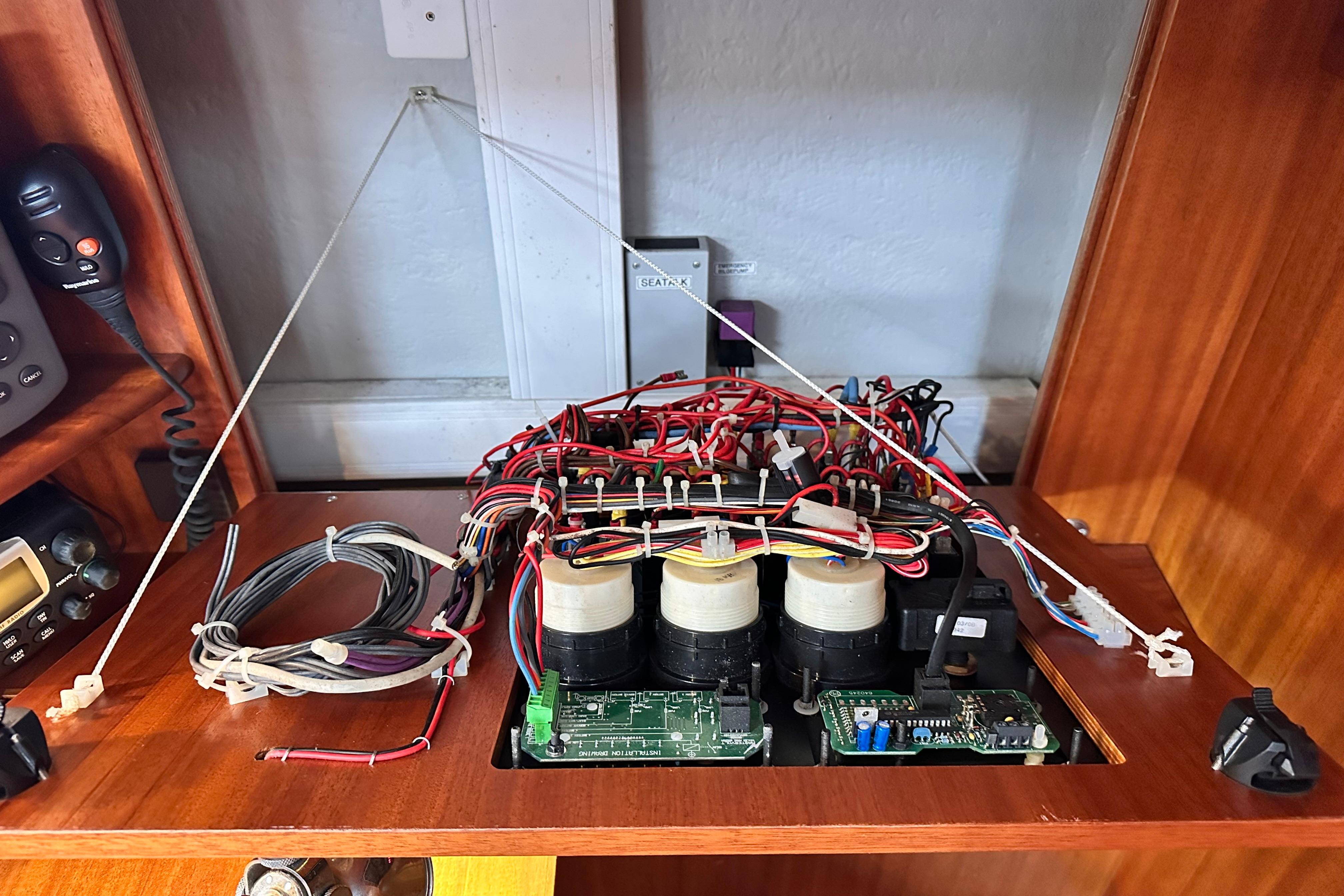 12v outlets at chart table, above sliding hatch in cockpit and both sleeping cabins