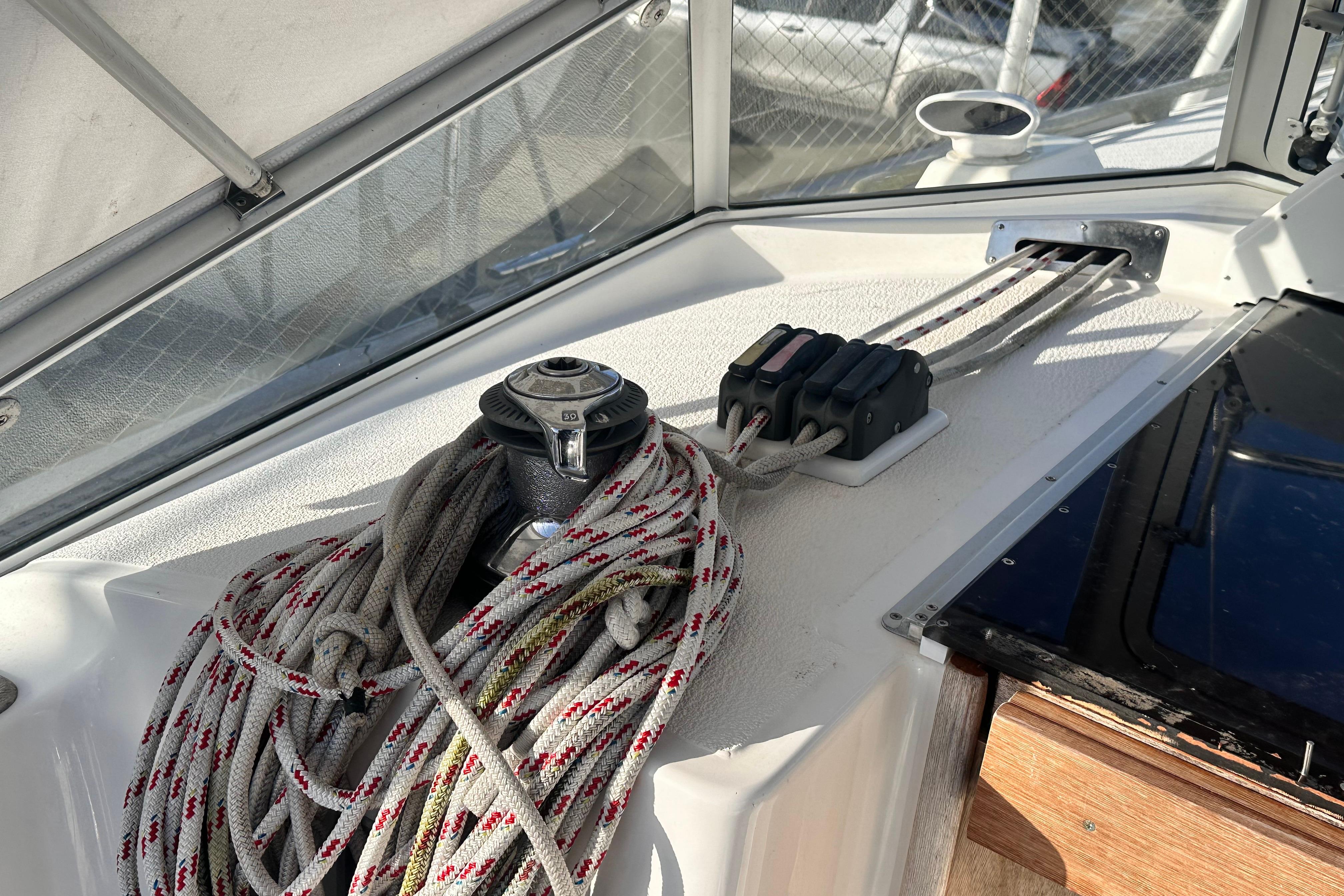 Halyards and lines lead into cockpit through 8 clutches