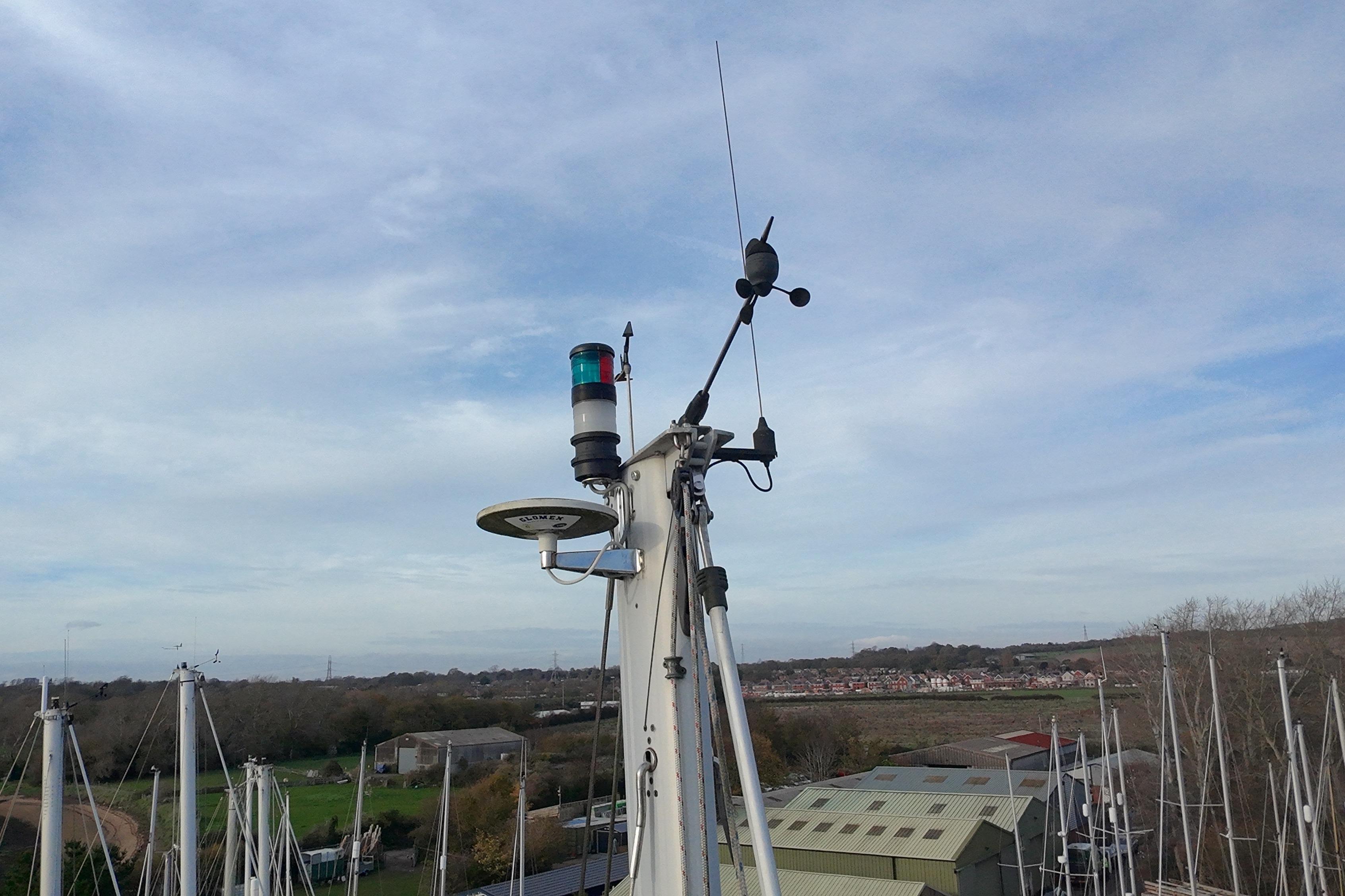 Simrad Shipmate RS8300 VHF radio with masthead antenna, speaker and socket at chart table and in cockpit