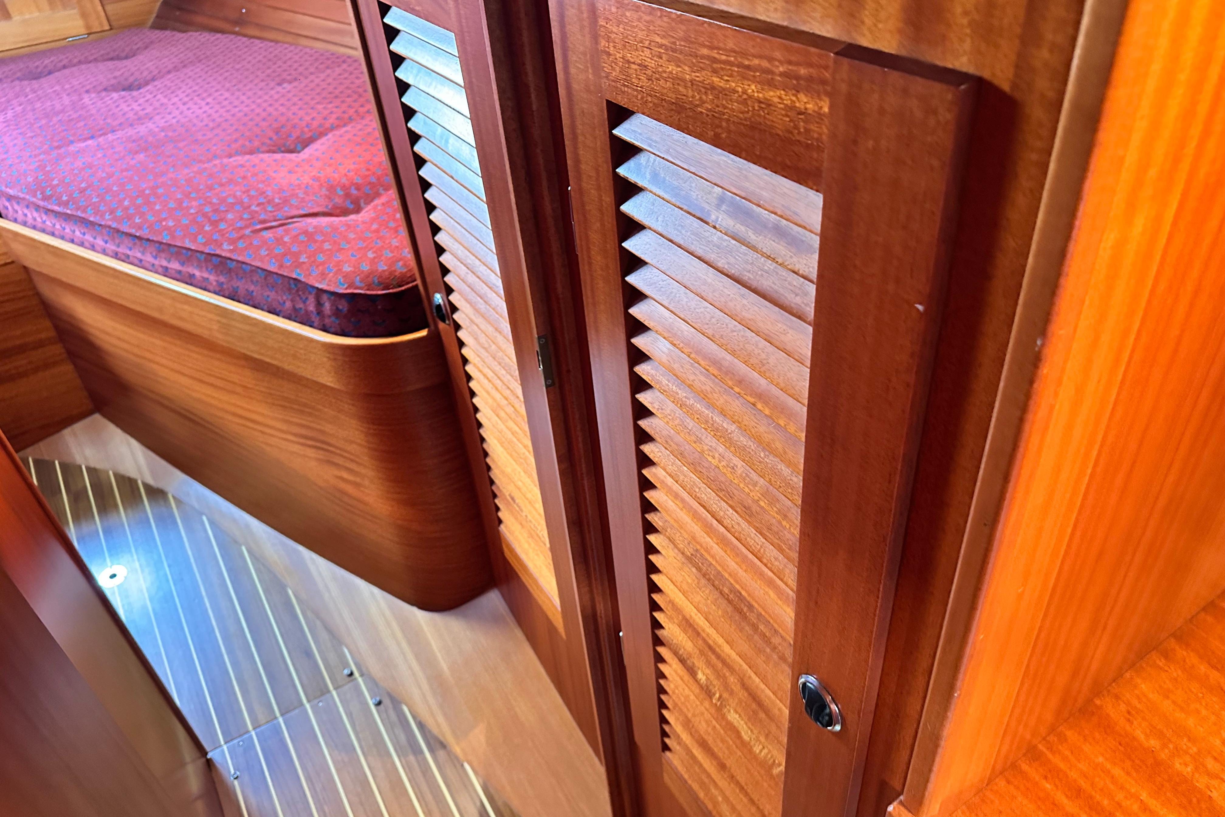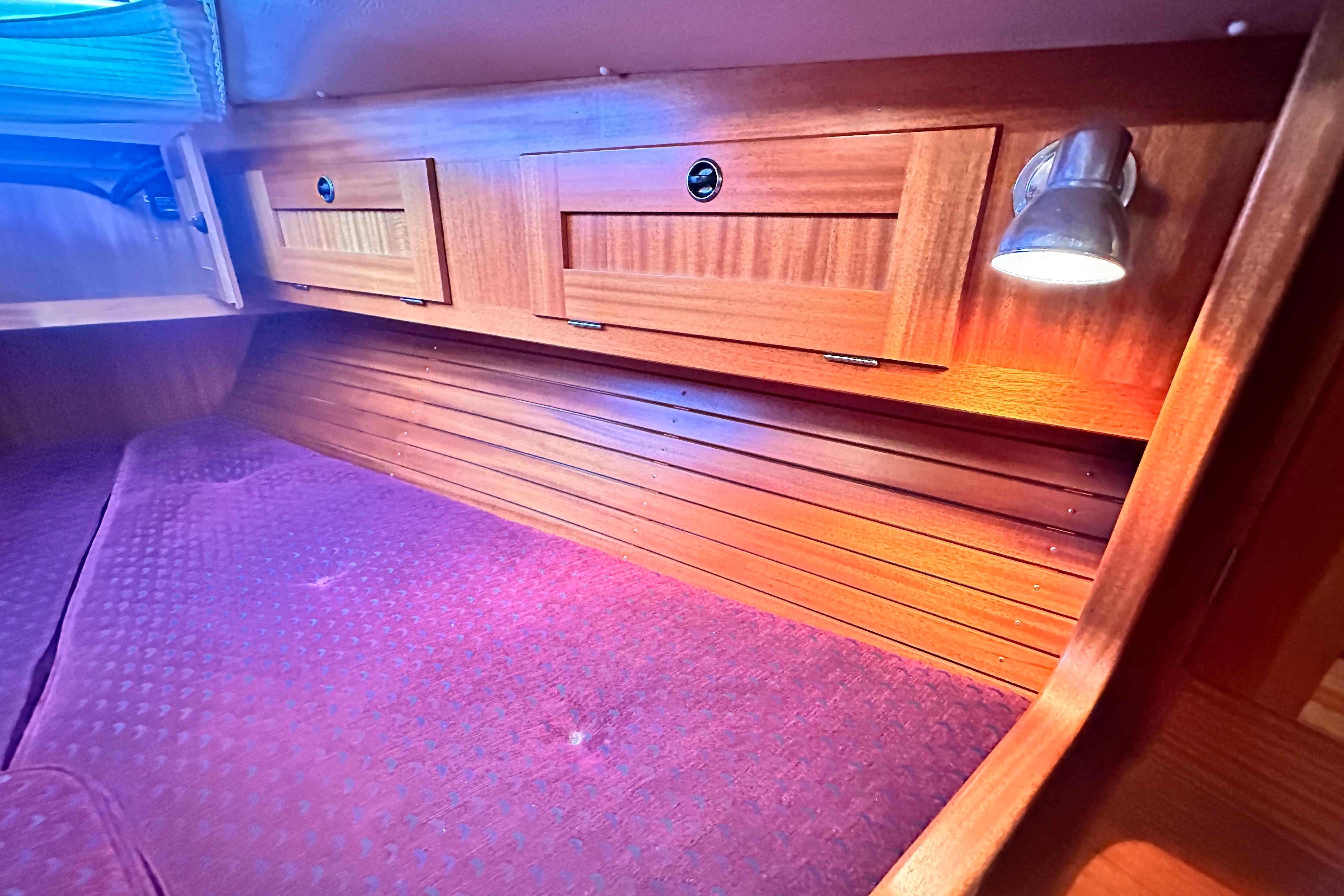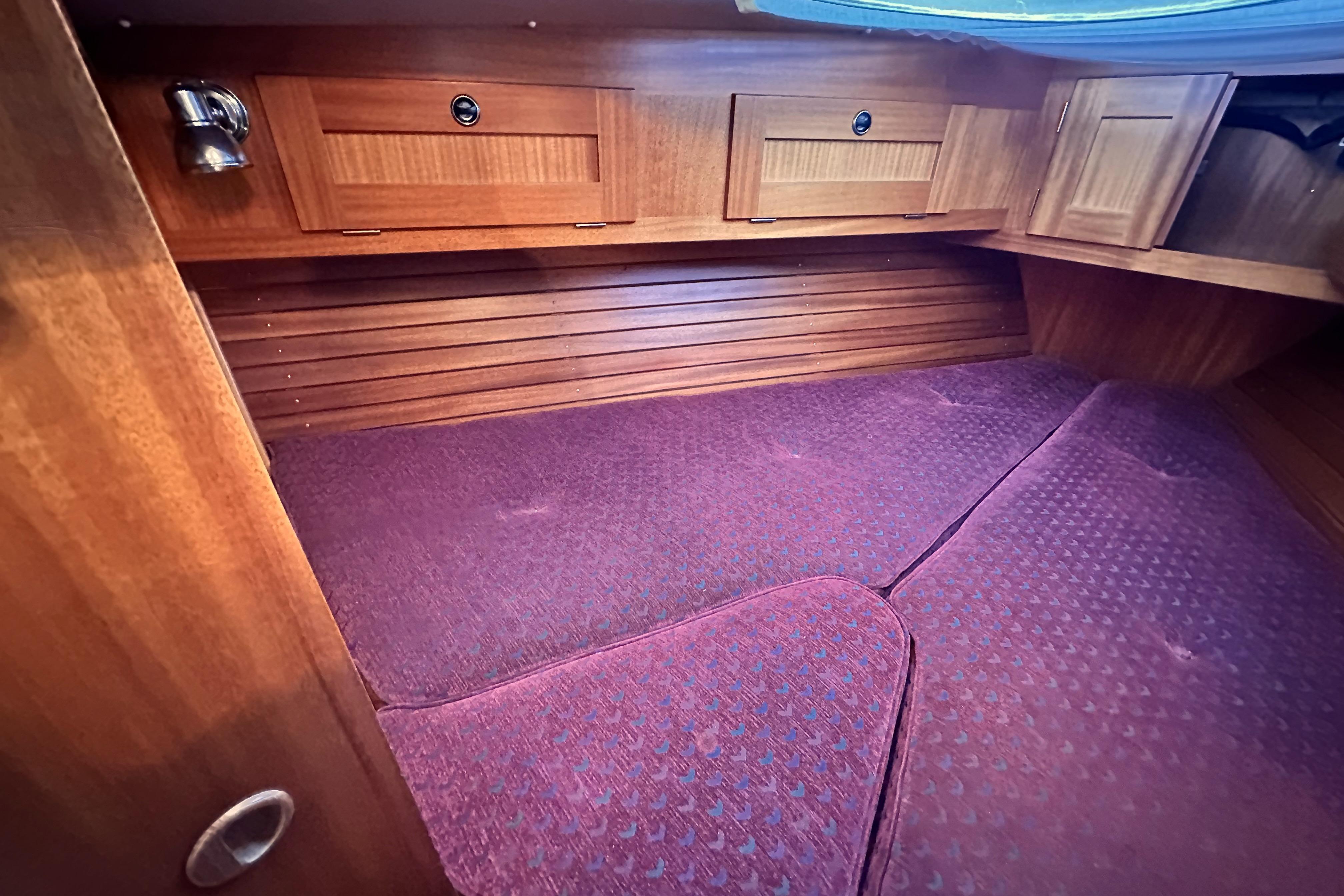 Batteries are located under the berth in the aft cabin.