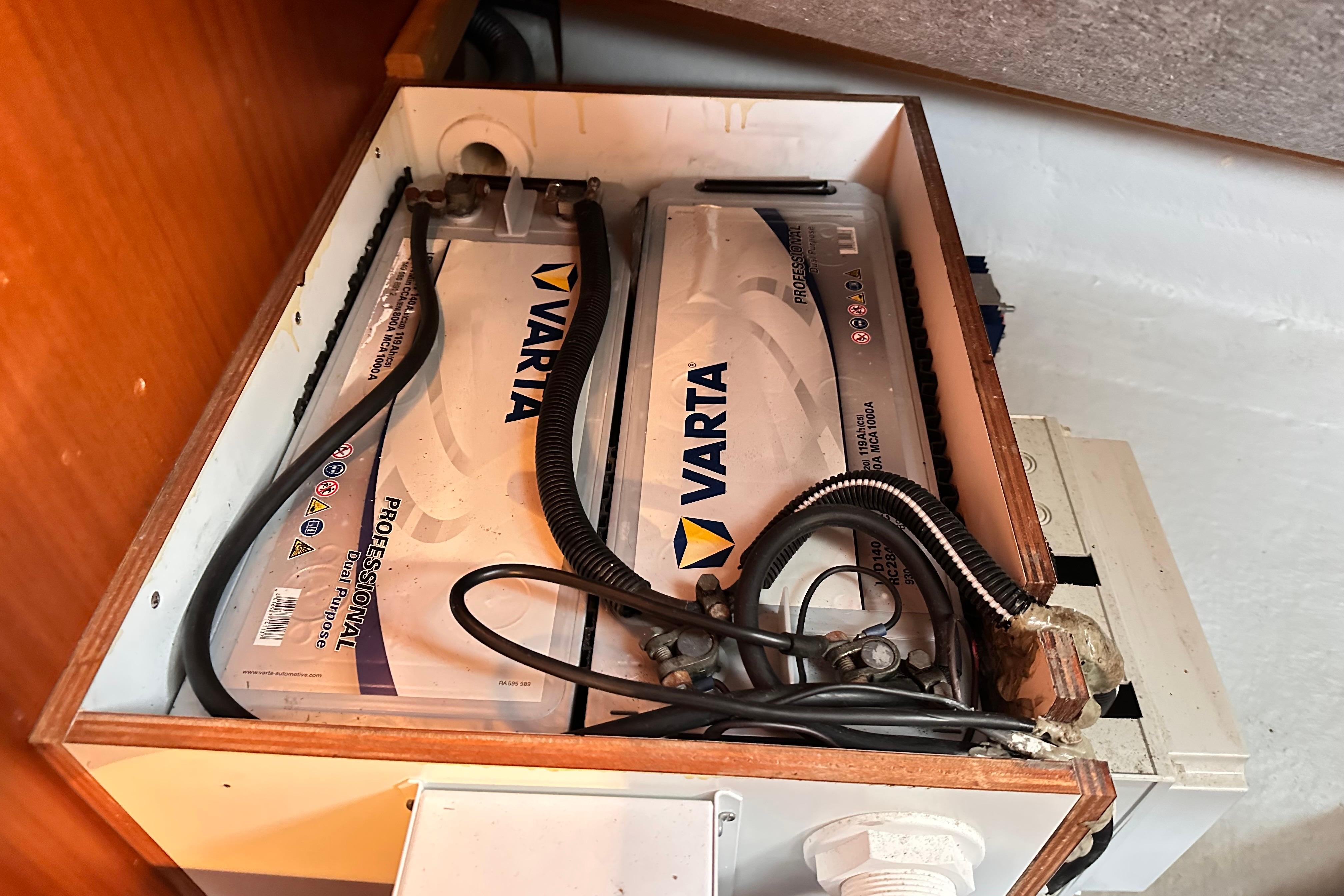 Two further Varta 12v batteries, totalling 280 Ah for the domestic electrical system.