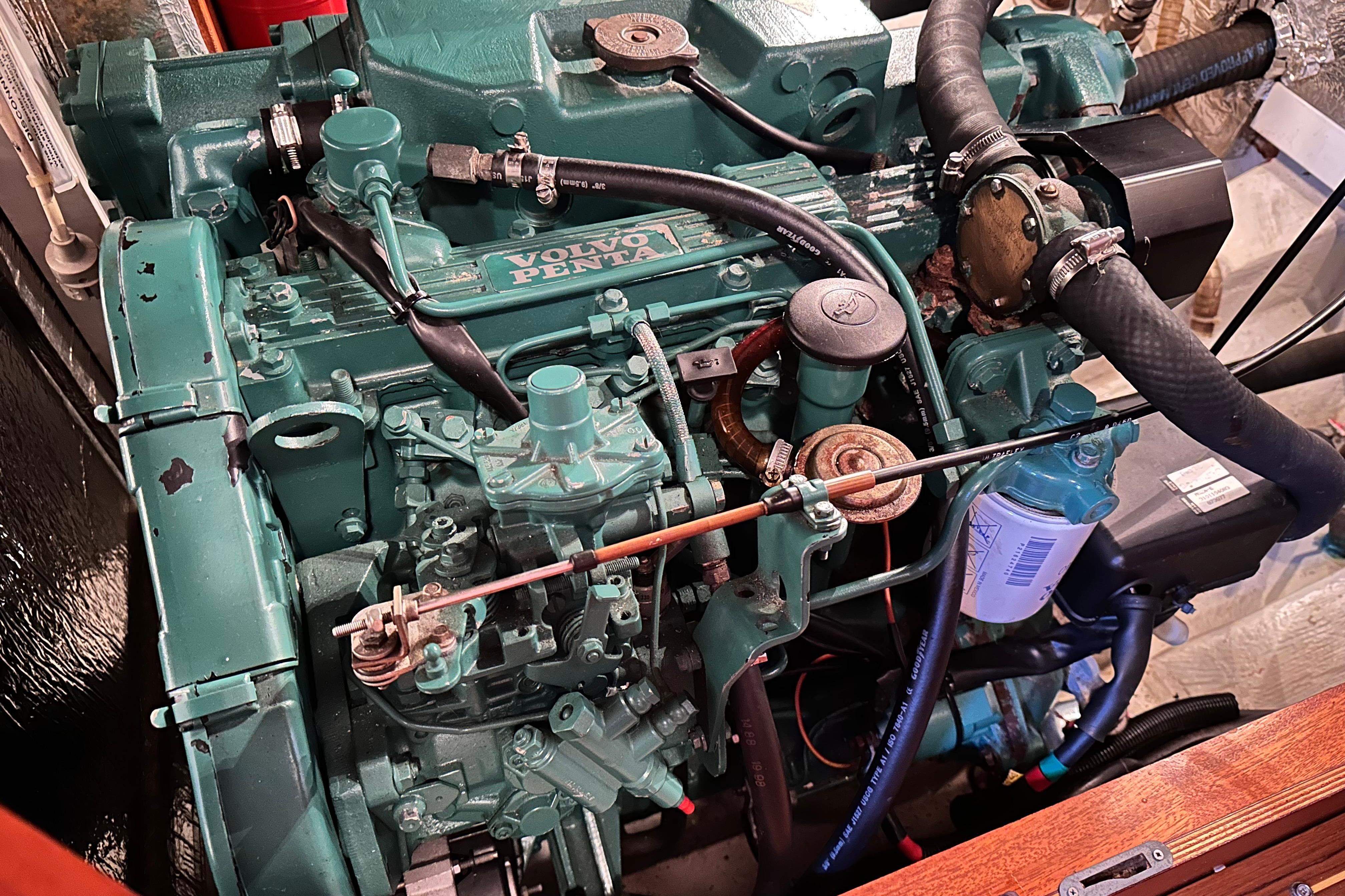 Volvo Penta MD22P 4-Cylinder 57HP marine diesel engine, professionally serviced every year. The engine is freshwater cooled.