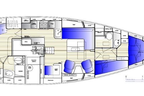 - Electric 12 v sockets at inner chart table and in the cockpit.