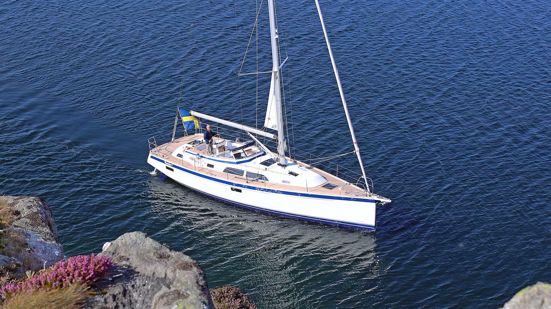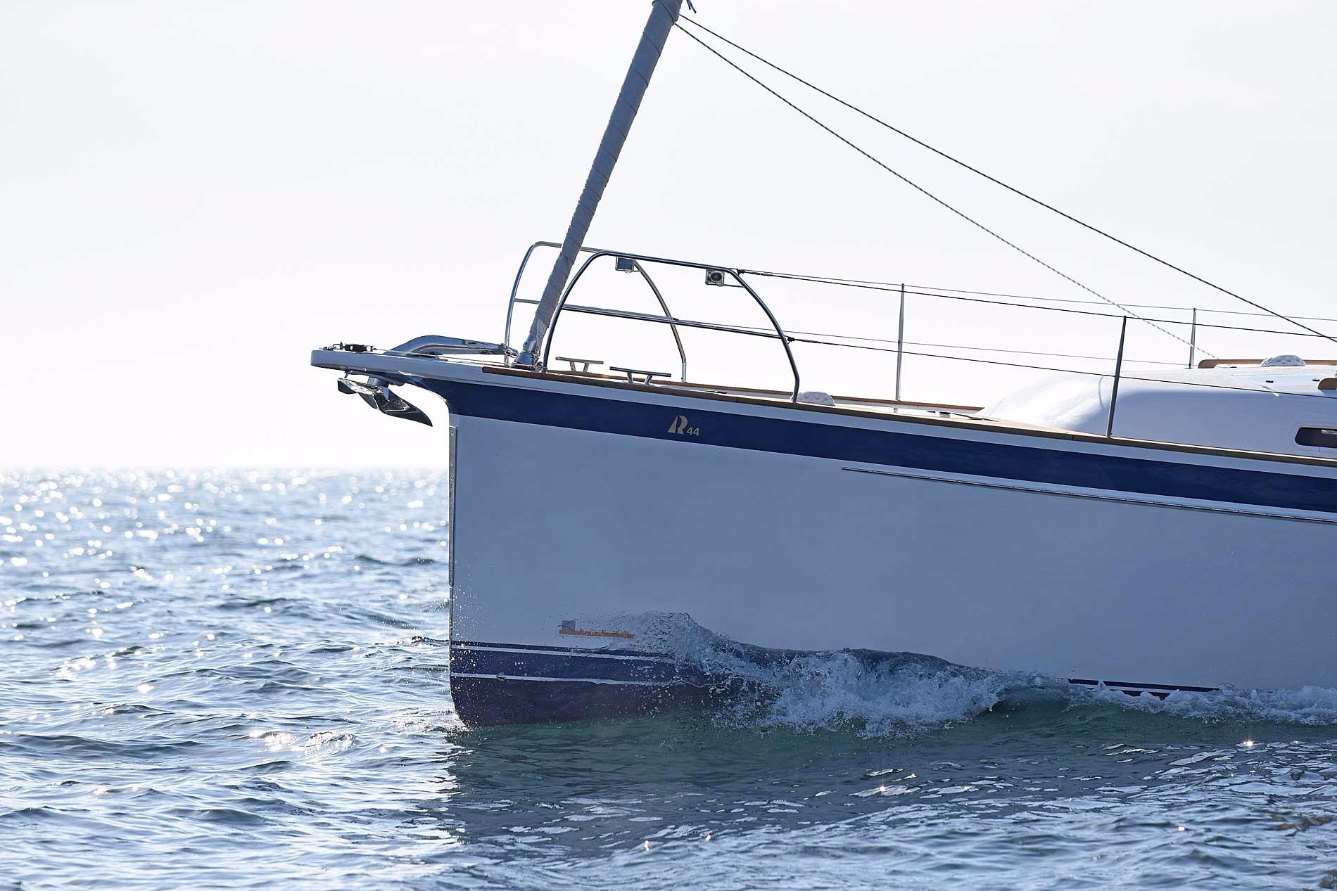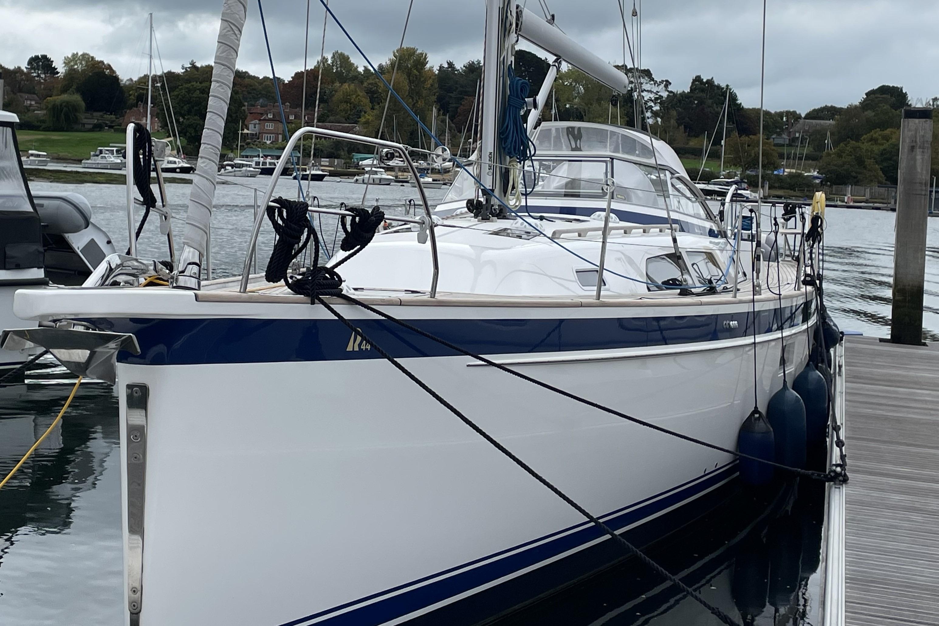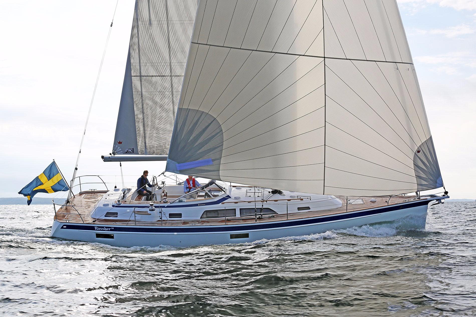 The Hallberg-Rassy 44 heralded a new era of the renowned Swedish cruising yachts. Frers latest thinking in hull design was incorporated in the Hallberg-Rassy theme; broader sections aft improved light airs and downwind sailing performance, the deep sections of her centre section and deep fore foot retain the comfort at sea associated with Hallberg-Rassy yachts, and the optimised waterline length gives great passage making speeds.
