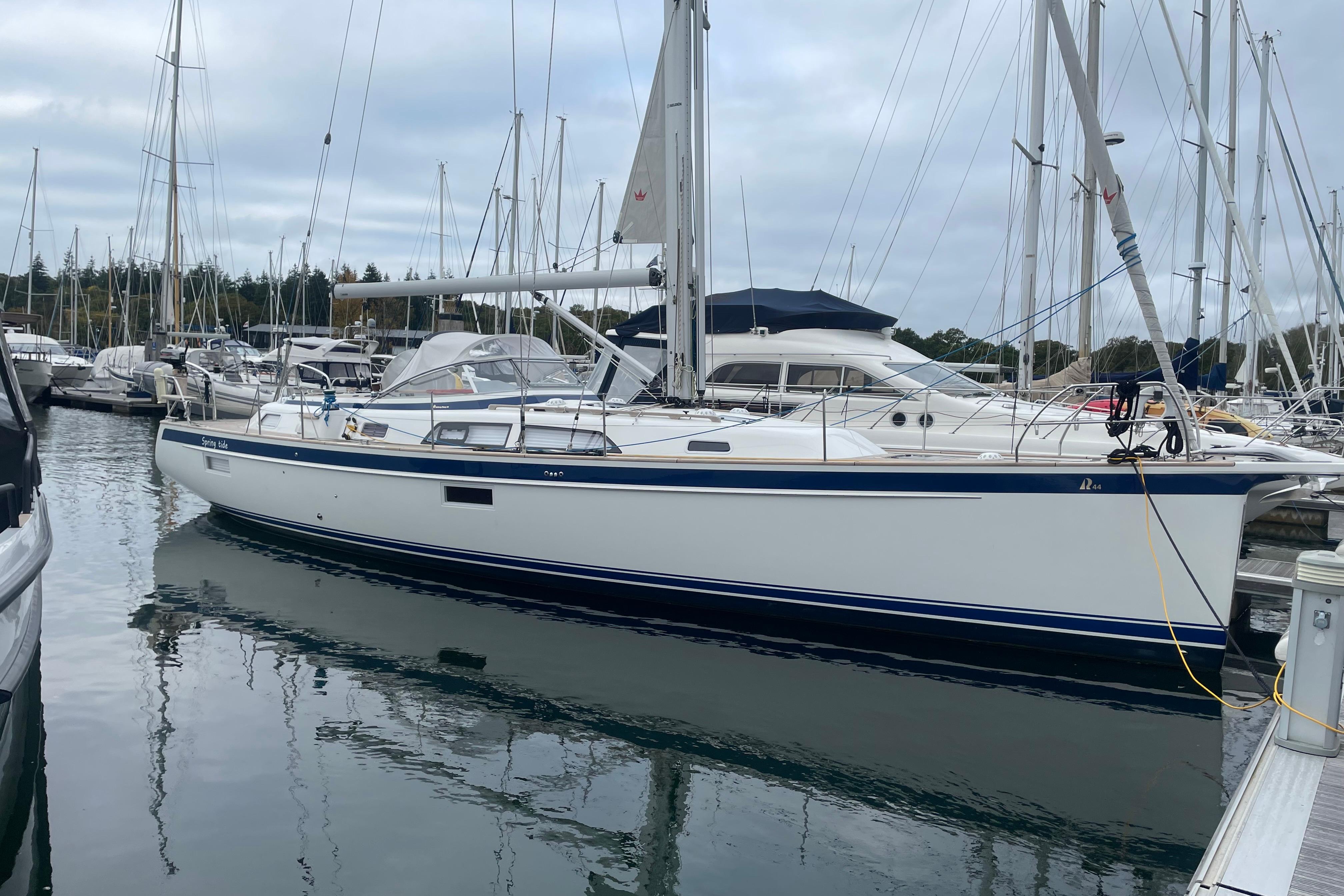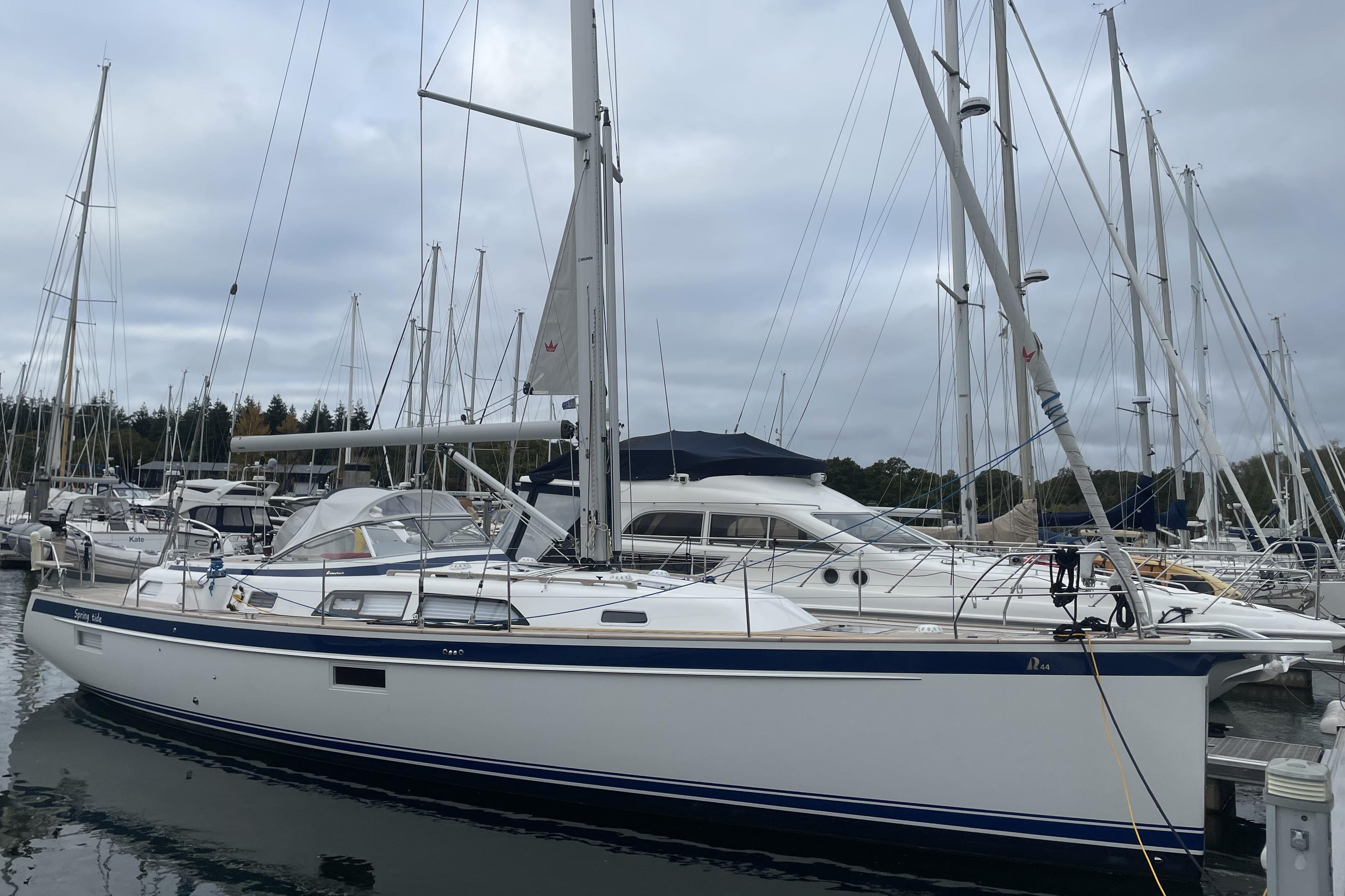 But the real value in SPRINGTIDE is her condition, specification and availability. This yacht could pass for a new yacht but has the advantage of being proven in use; she has covered well under two thousand miles, enough to sort out what snagging list there was. She is full push-button sailing with upgraded sails, upgraded electrics with a diesel genset, charger/inverter and extra battery capacity. This yacht represents a significant saving on a new HR44 and is in commission, available for immediate delivery. Please look at SPRINGTIDE's extensive inventory and arrange a viewing through our offices at Hamble Point Marina.