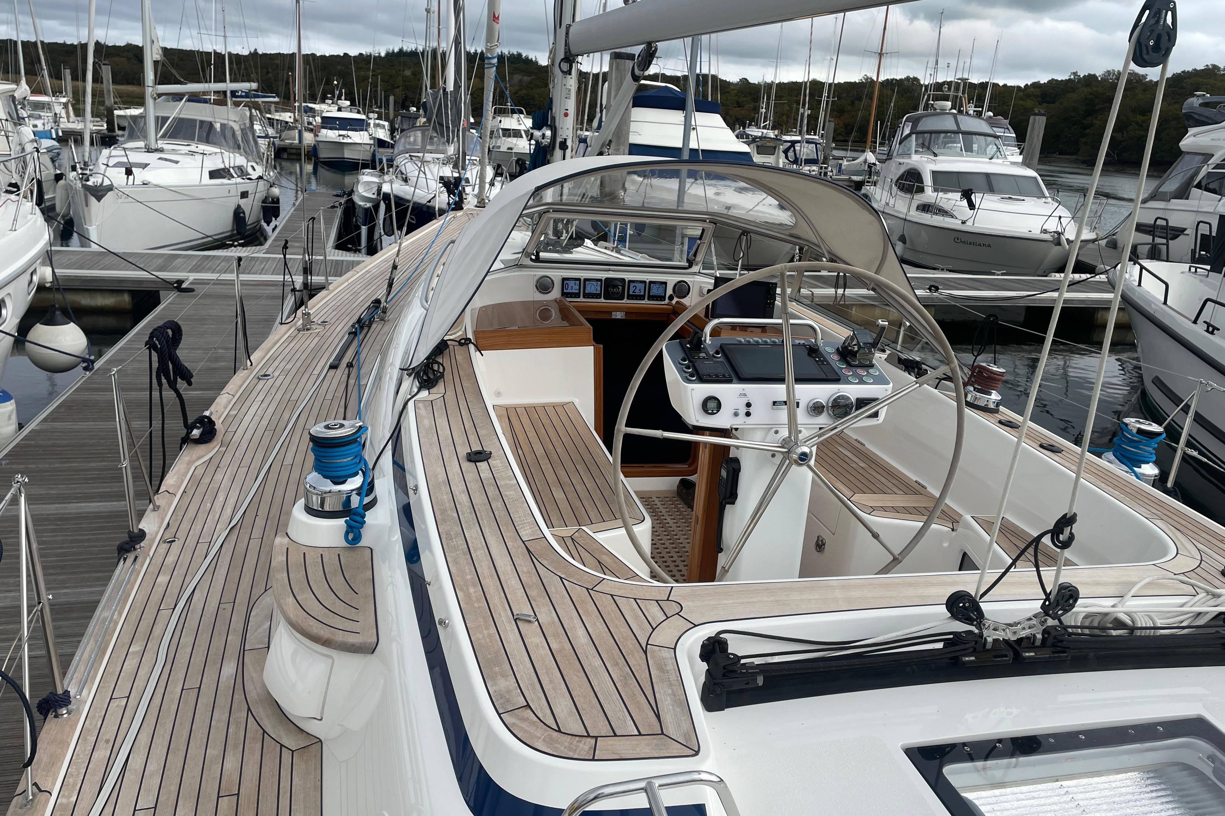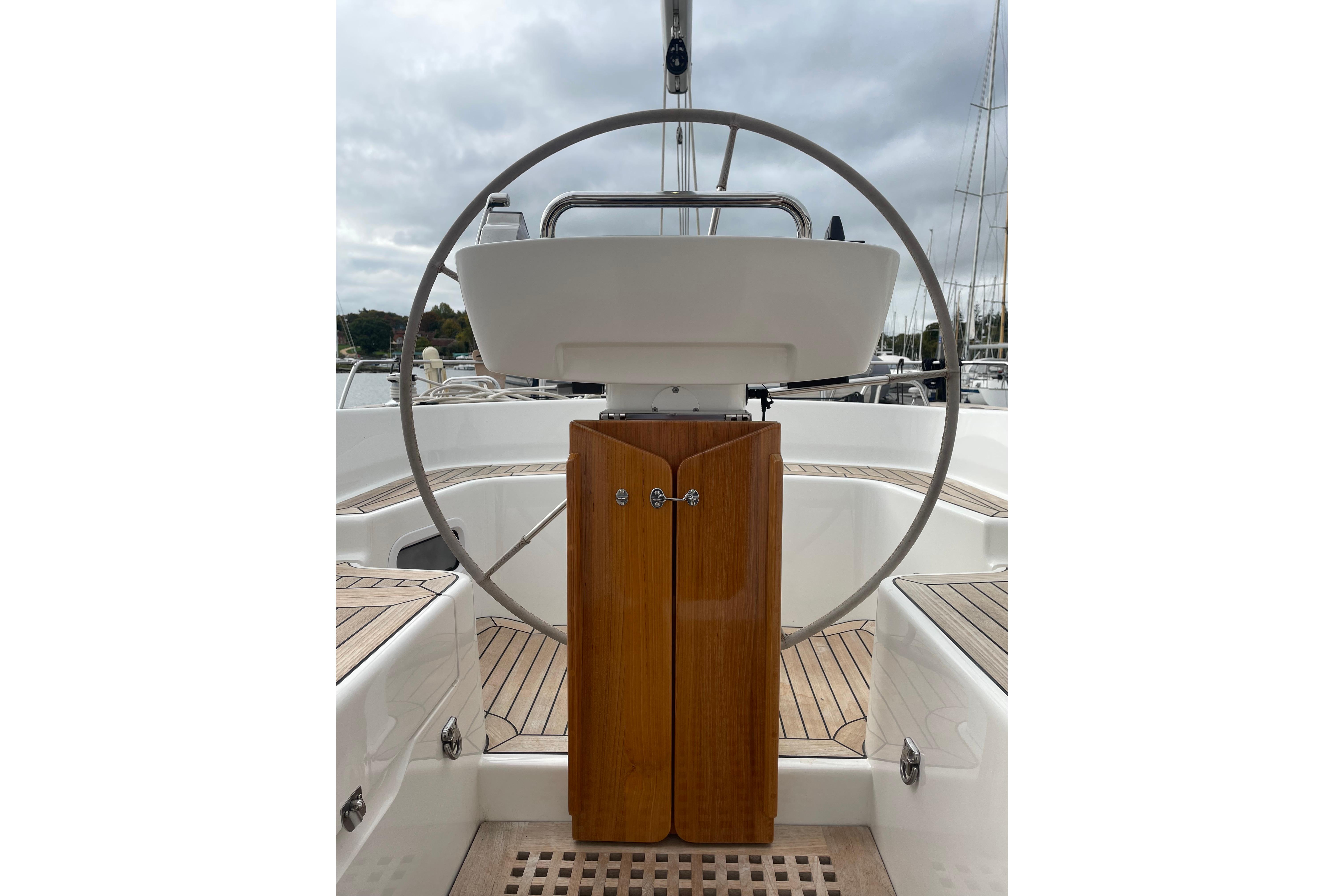 - The cockpit floor is covered with a teak grating.