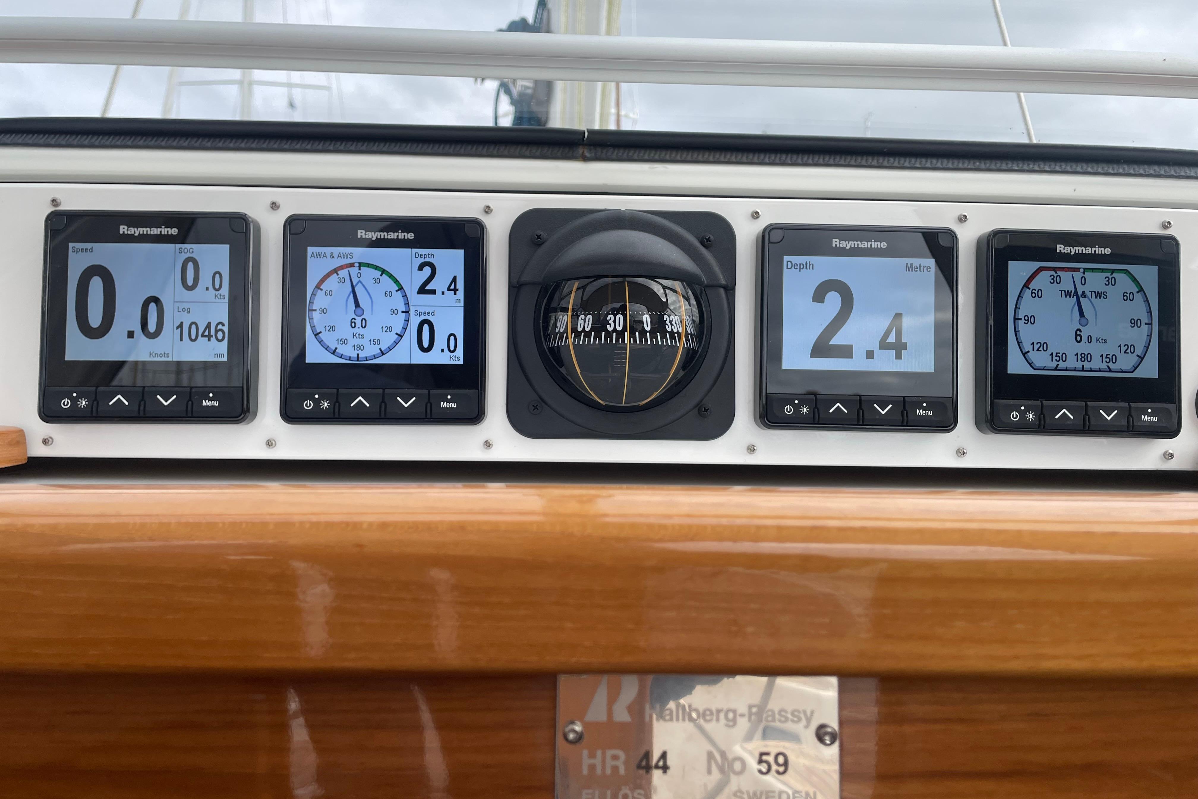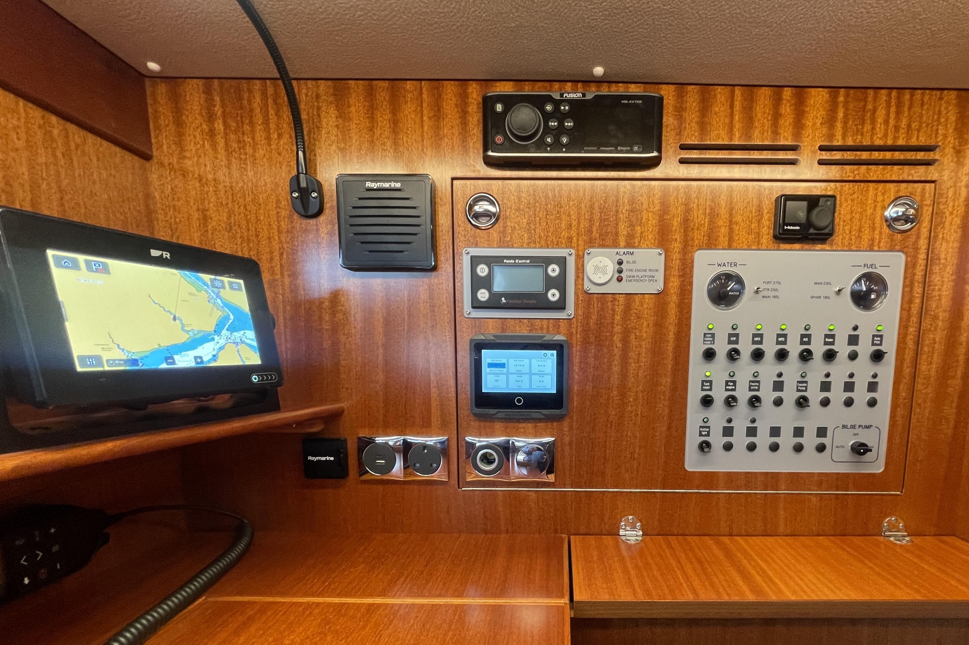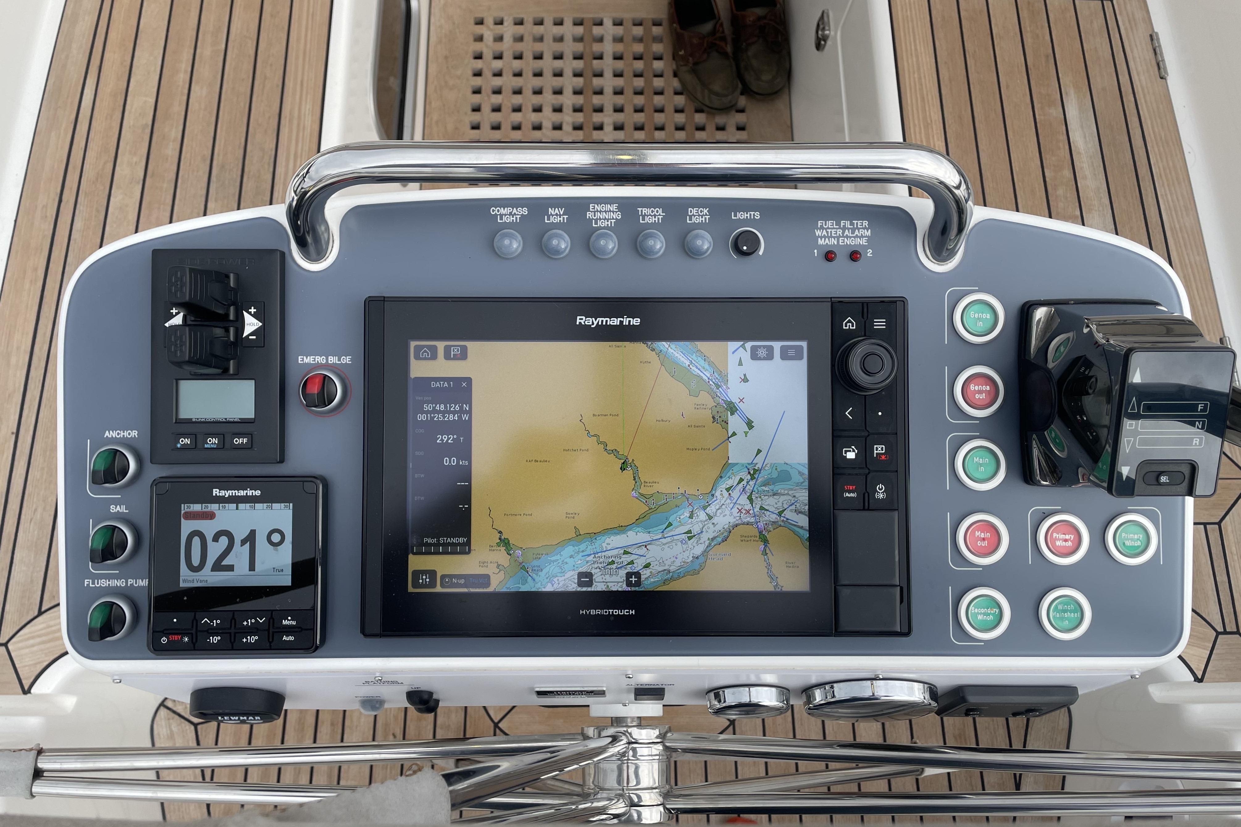 - Above the sliding hatch there are 4 x Raymarine i70 instruments.