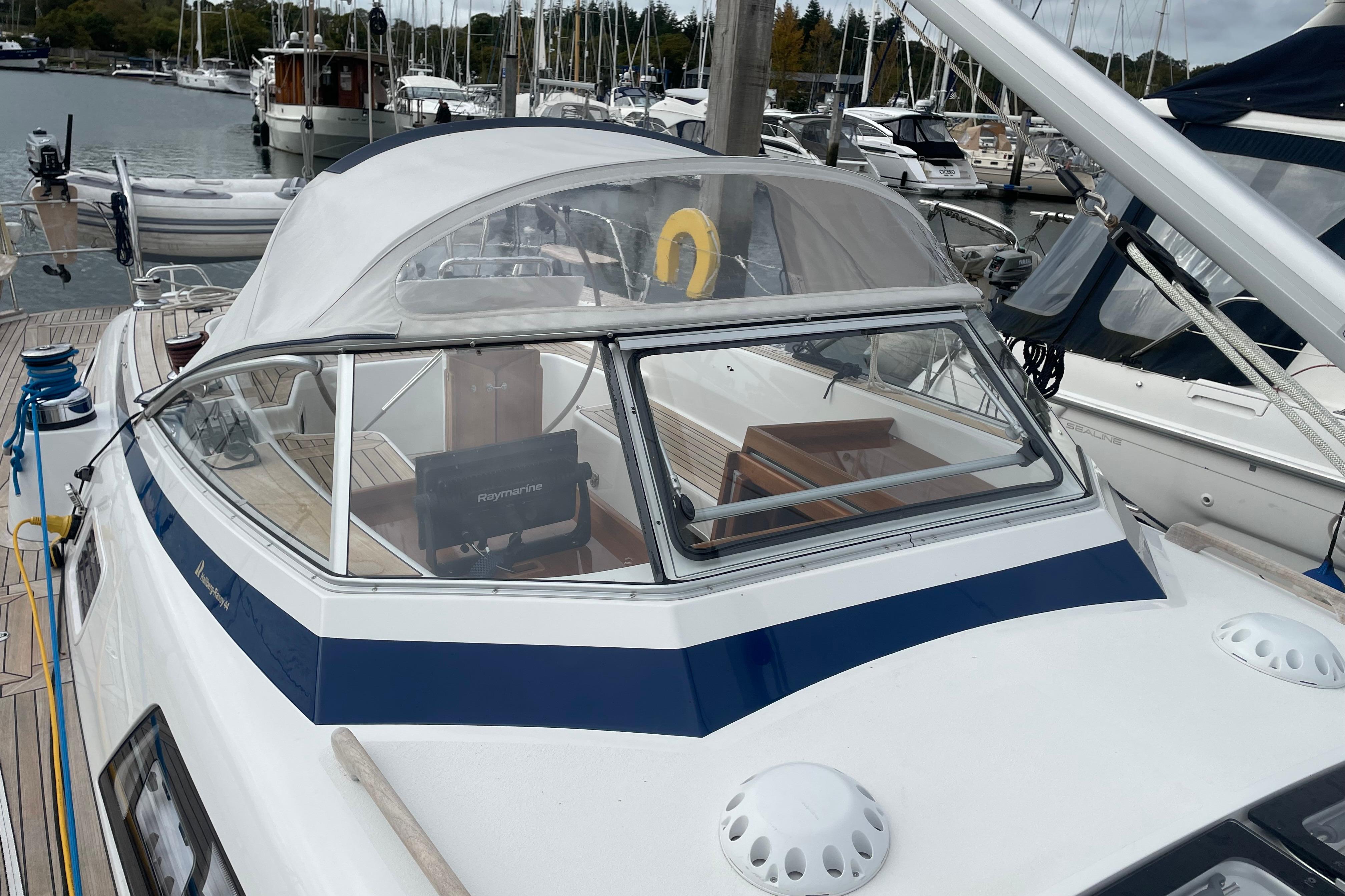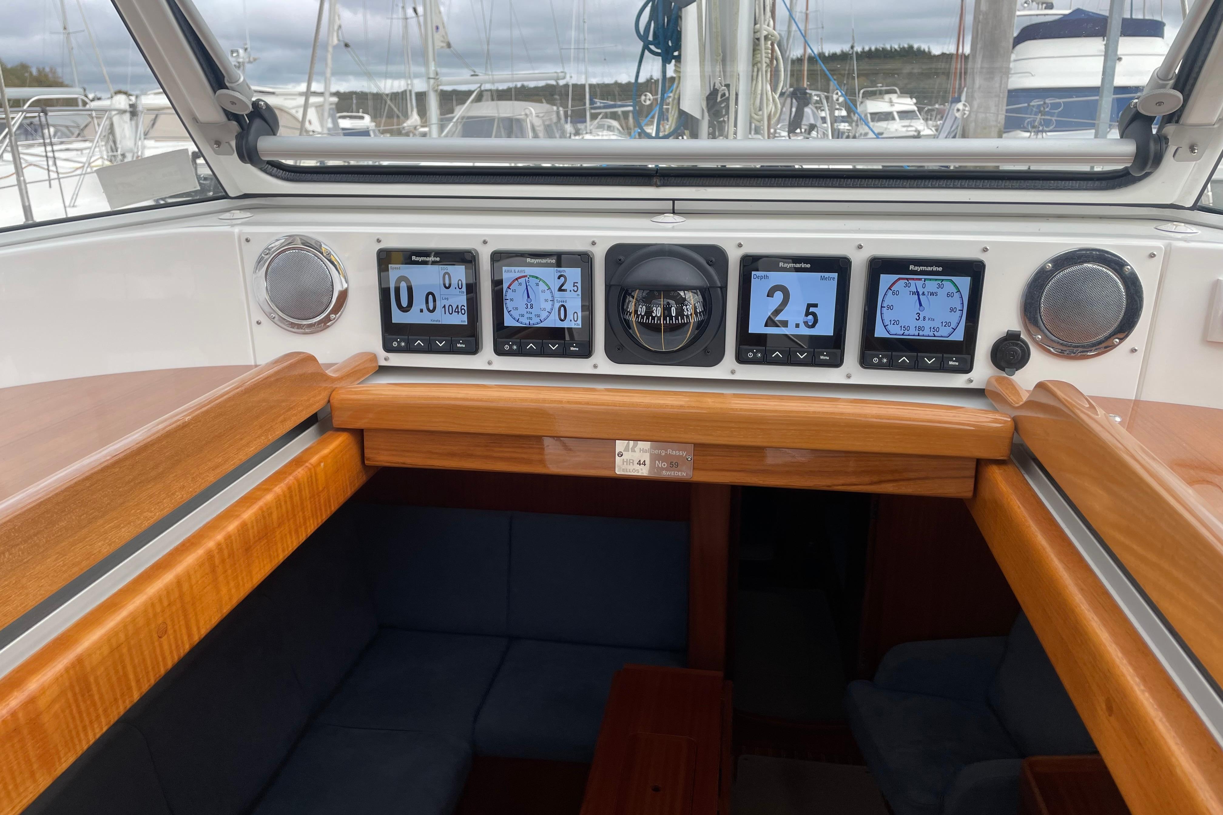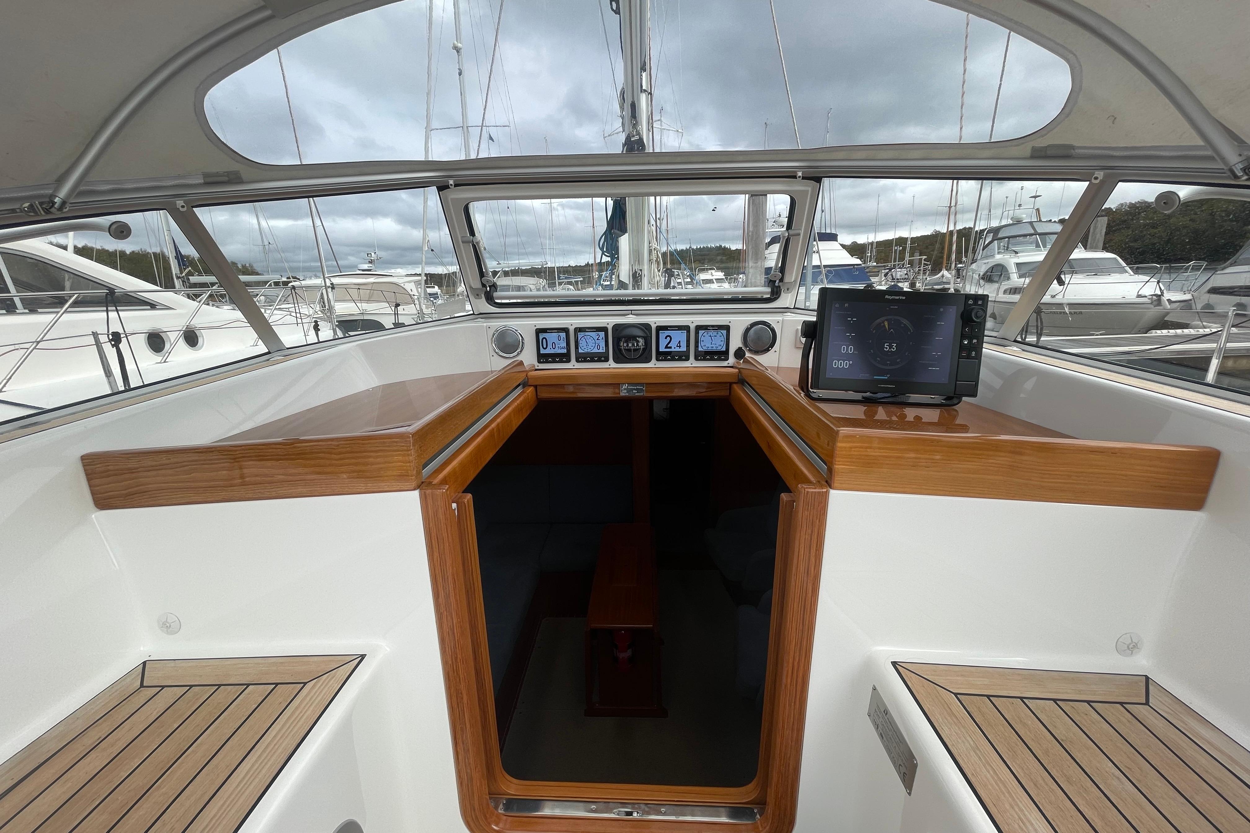 - Above the sliding hatch there are 4 x Raymarine i70 instruments.