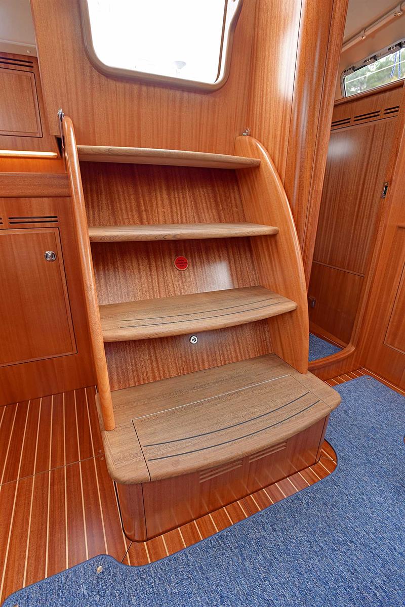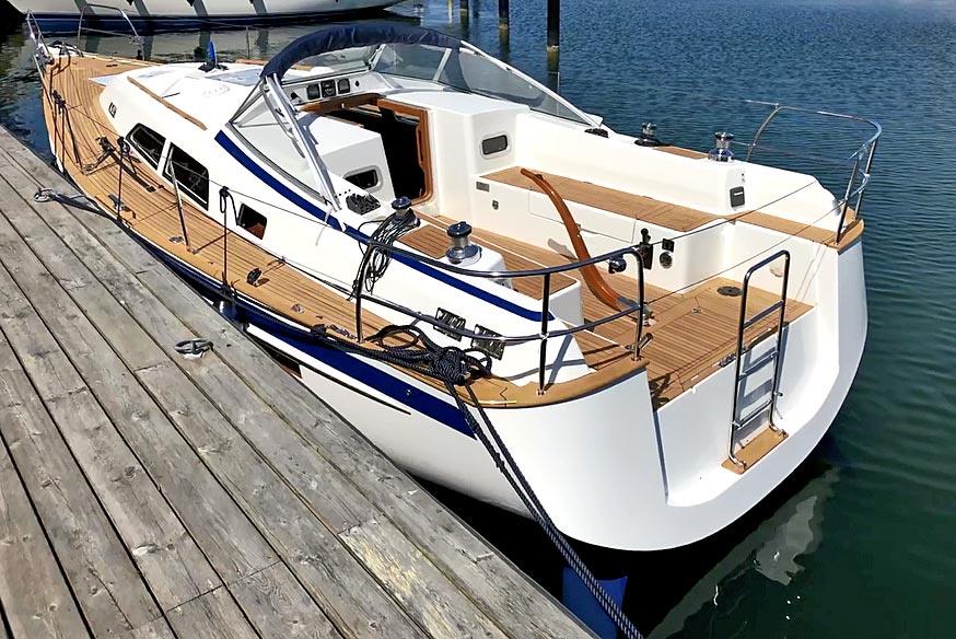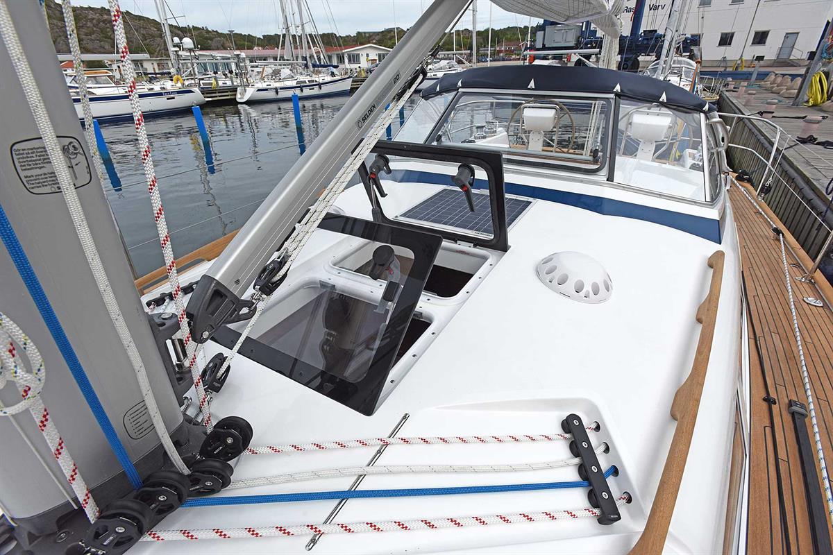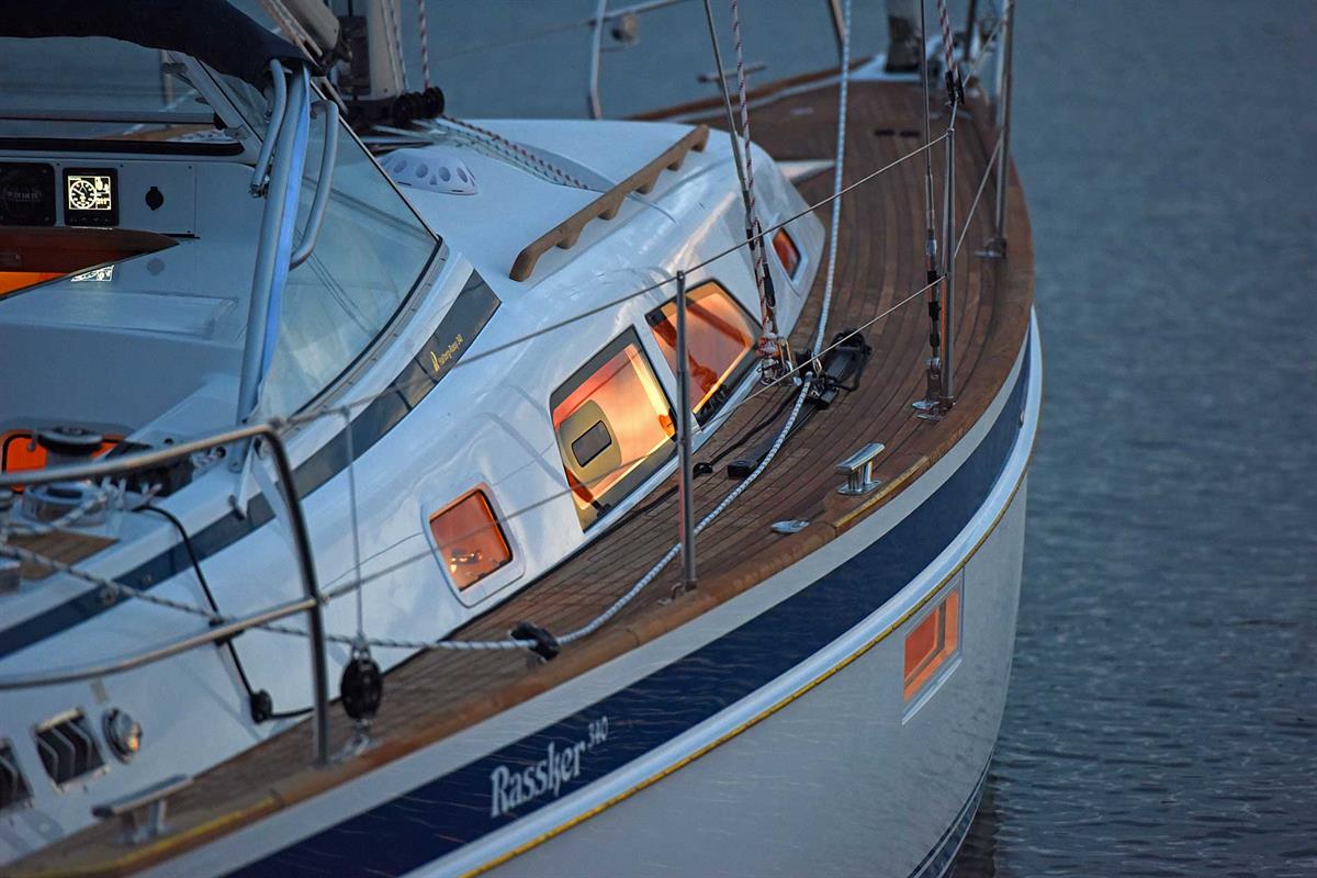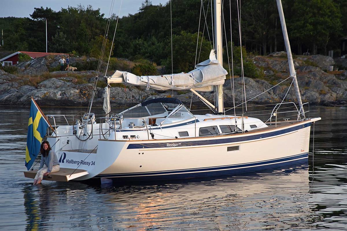 The Hallberg-Rassy 340 has an upright bow for contemporary appearance, long waterline and fine sea worthiness with a rounded underwater body. The boat has an elegant integrated bowsprit with many features:
