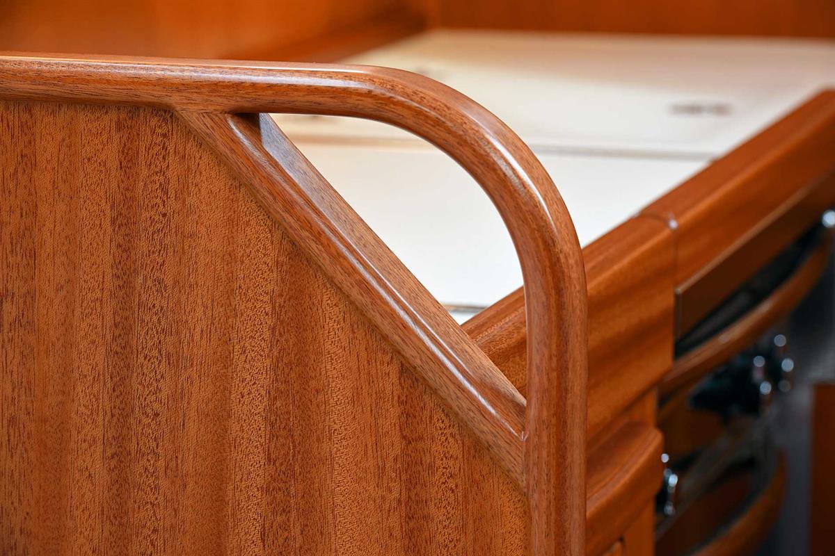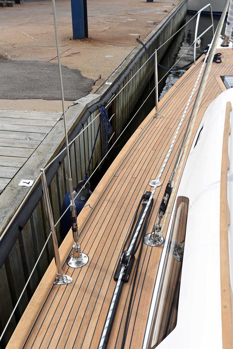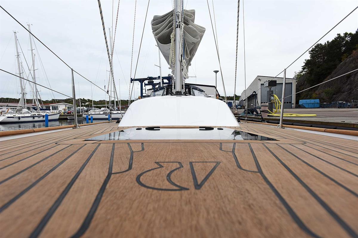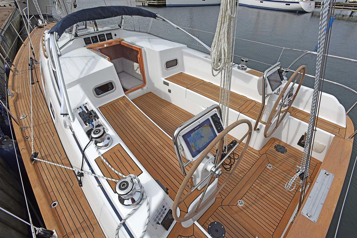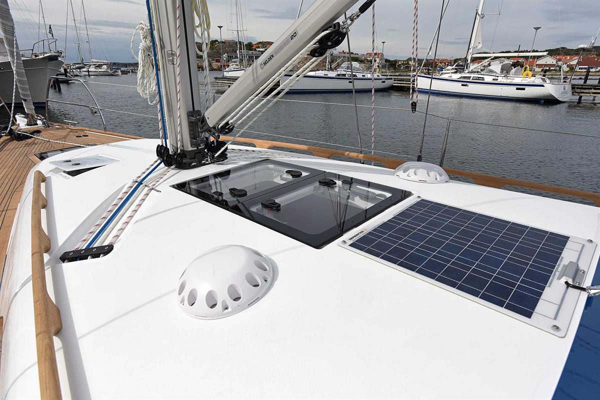 The Hallberg-Rassy 340 has an upright bow for contemporary appearance, long waterline and fine sea worthiness with a rounded underwater body. The boat has an elegant integrated bowsprit with many features: