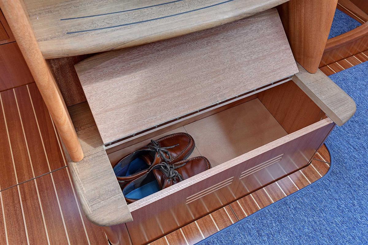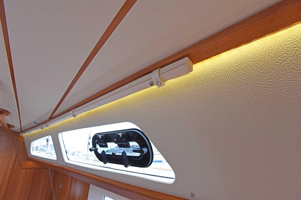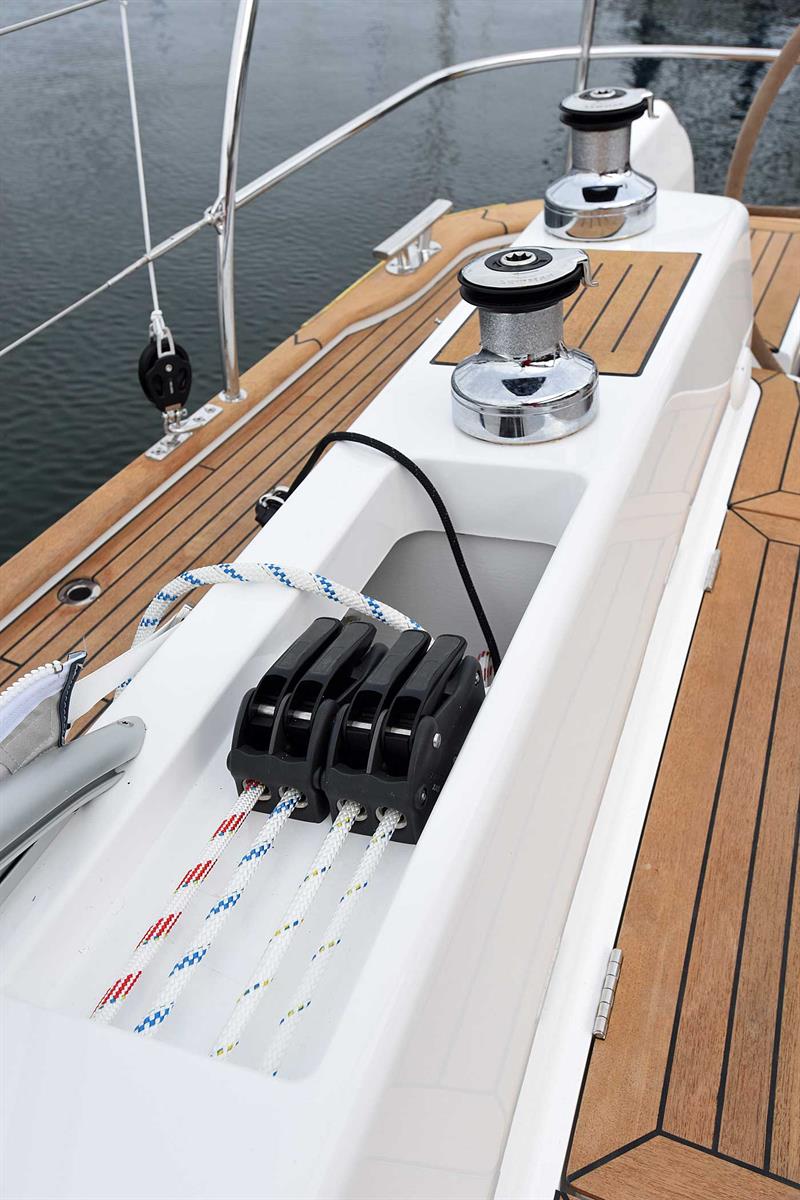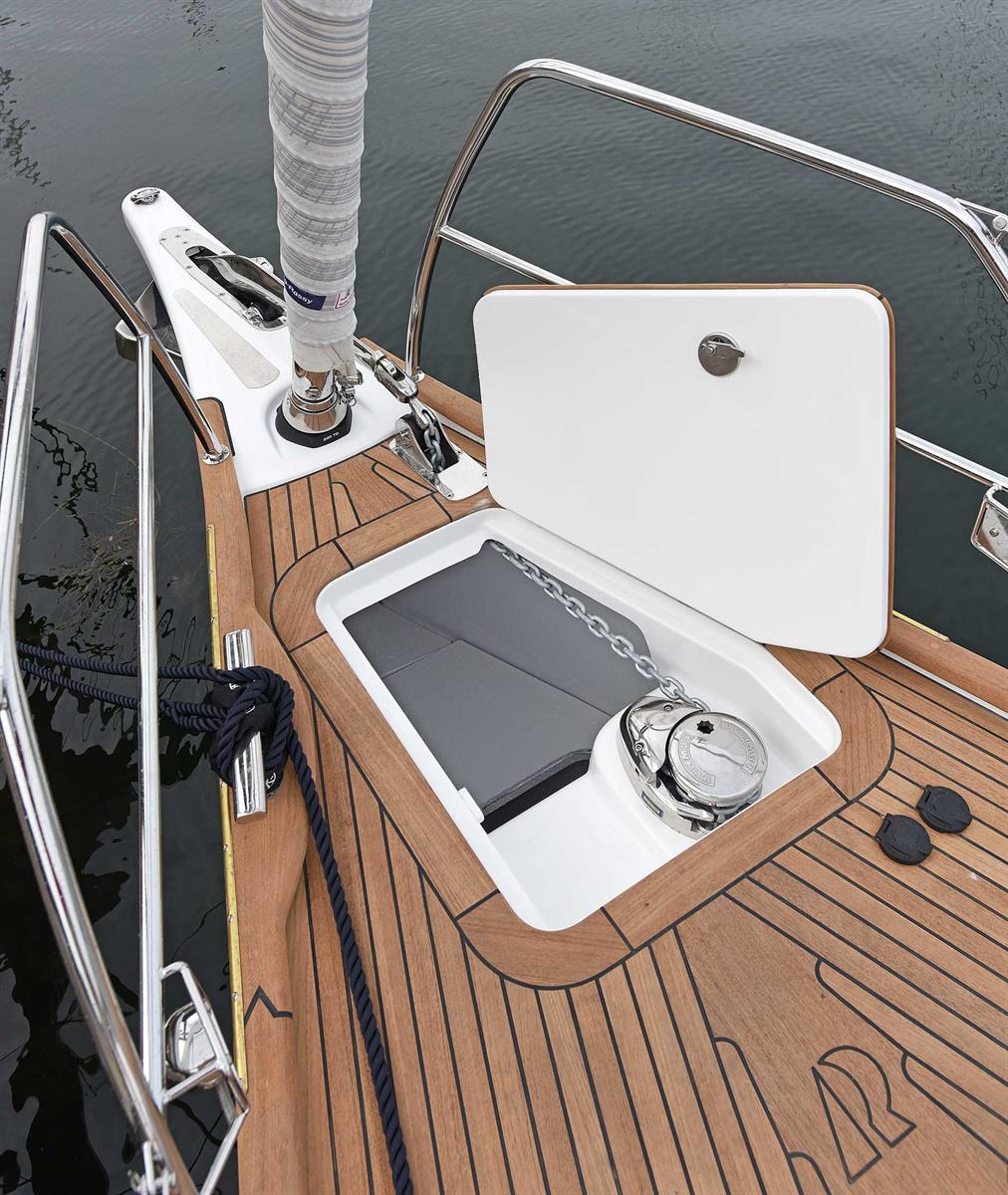 - An ideal position for carrying an anchor, with a safe distance to the hull, controlled by an optional electric windlass