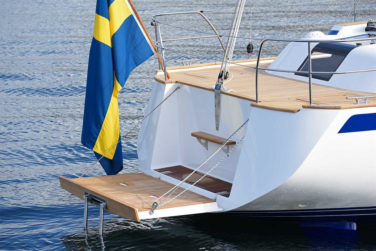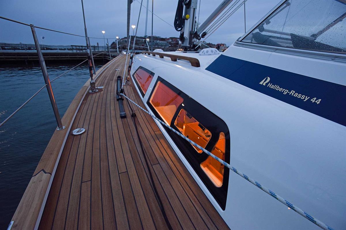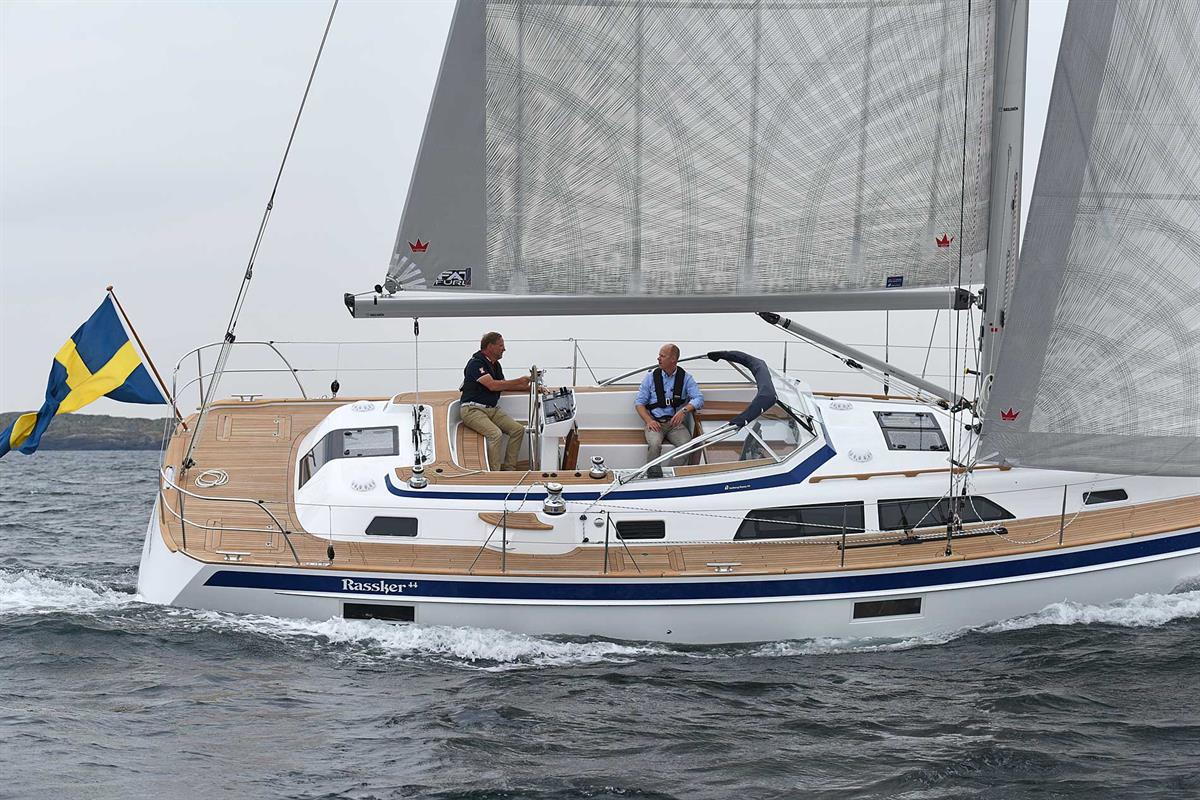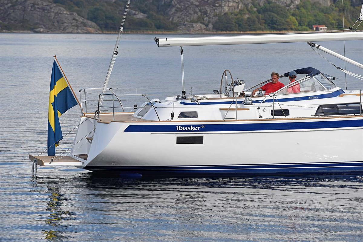 The all-new Hallberg-Rassy 44 combines the best Hallberg-Rassy stands for, spiced with contemporary improvements for fast and comfortable cruising. Twin rudder blades, precise steering, elegant integrated gennaker bowsprit, efficient hull lines, a modern sail plan, a fold out bathing platform and generous interior comfort with lots of natural light. The Hallberg-Rassy 44 is the latest and most exciting cruising boat around.